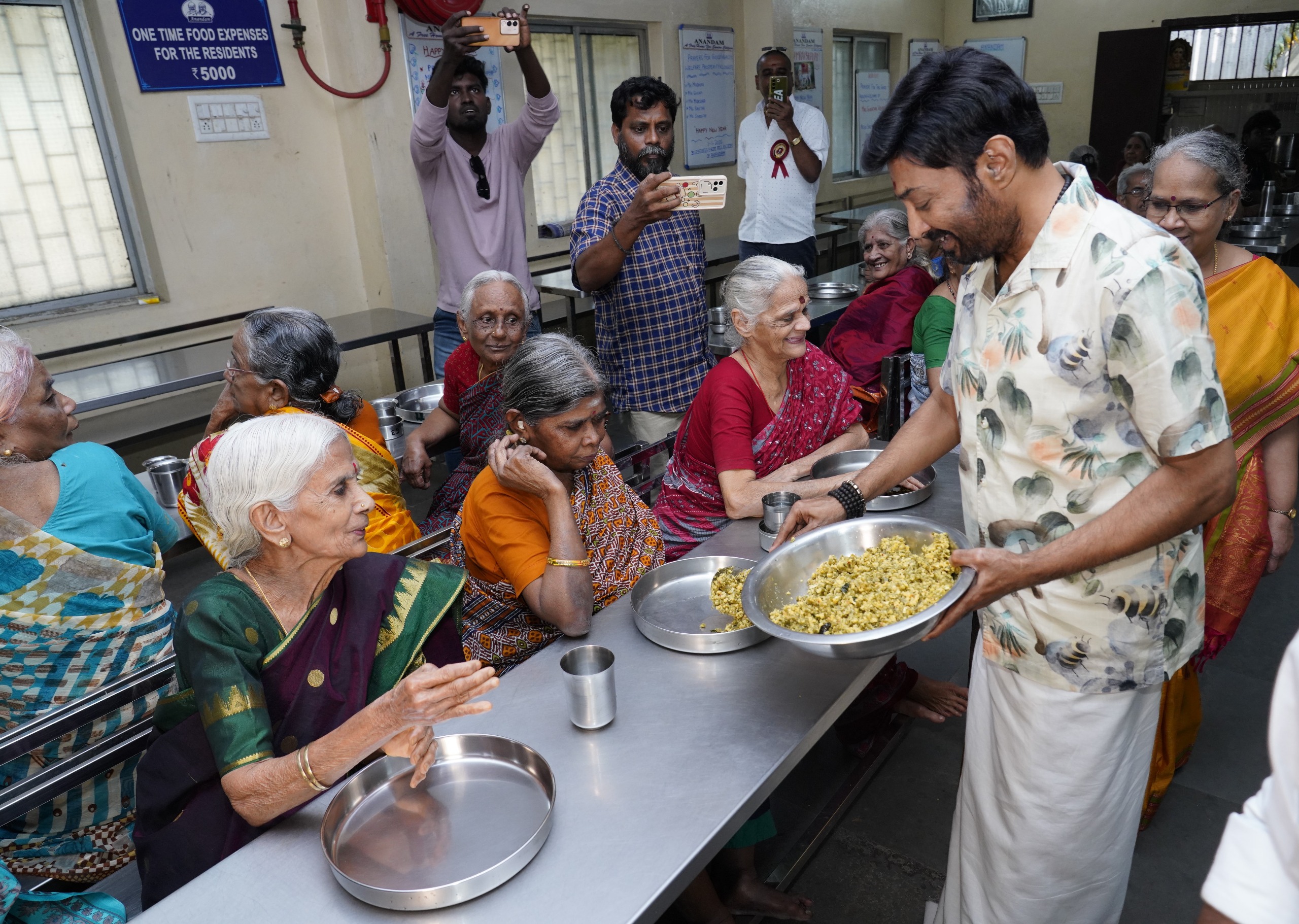The stills & Video of Actor Mohan sir celebrated New Year in Anand Old Age Home by distributing Sweets & Food followed by Foods to -500+ Peoples around the Old age Home Organised by