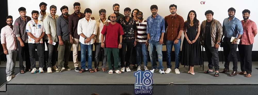 The premiere saw the gracious presence of iconic names from the industry, including Actor & Producer Vishnu Vishal, Cinematographer Ravi K. Chandran, Directors Poo Sasi and Ashwath Marimuthu, Cinematographer Thirunavukarasu, Actors Kishen Das and Keerthi Pandian, along with the full team of 18 Miles (Tharana), Ashok Selvan, Mirnaa Menon, Director Sathish Selvakumar, Music Director Siddhu Kumar, Producer Santosh, and many more rising and established talents.