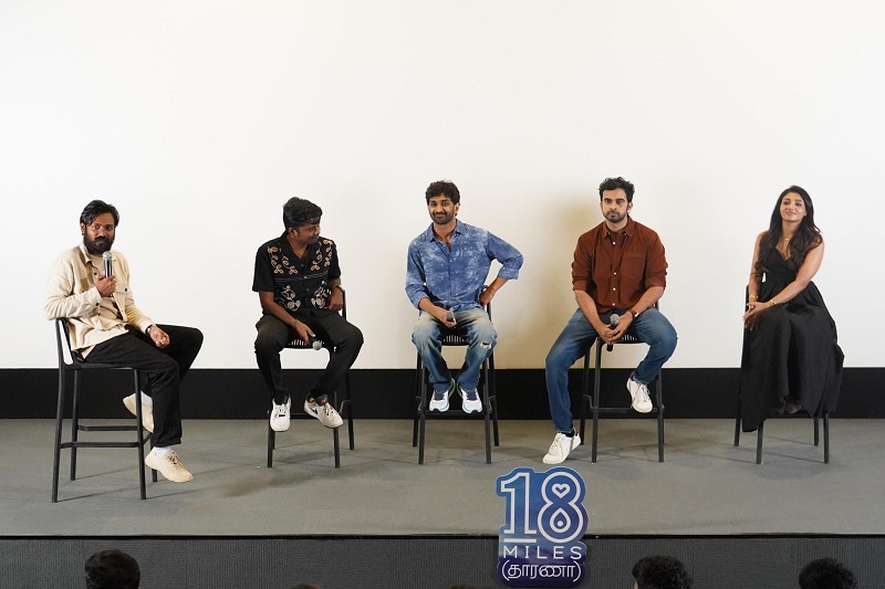 The premiere saw the gracious presence of iconic names from the industry, including Actor & Producer Vishnu Vishal, Cinematographer Ravi K. Chandran, Directors Poo Sasi and Ashwath Marimuthu, Cinematographer Thirunavukarasu, Actors Kishen Das and Keerthi Pandian, along with the full team of 18 Miles (Tharana), Ashok Selvan, Mirnaa Menon, Director Sathish Selvakumar, Music Director Siddhu Kumar, Producer Santosh, and many more rising and established talents.