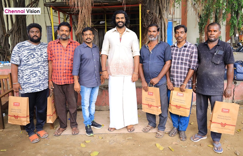 Speaking about this, Shanmugapandian said, “My father was the one who helped everyone with the motto of ‘We will do whatever we can for those who need help’. Following in his footsteps, I shared food and clothes as a small gift to the crew who worked hard for the film ‘Kombuseevi’ today.”