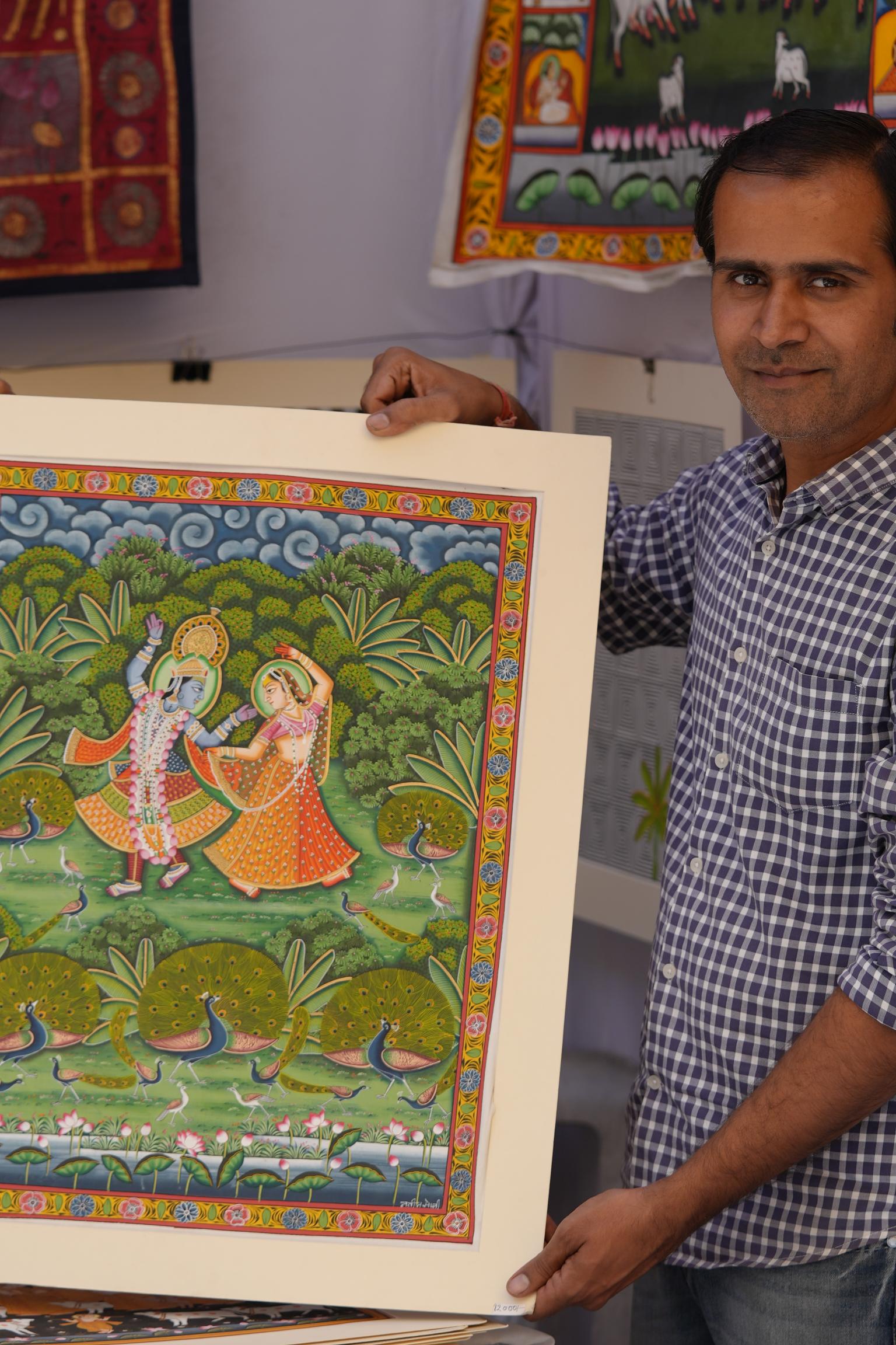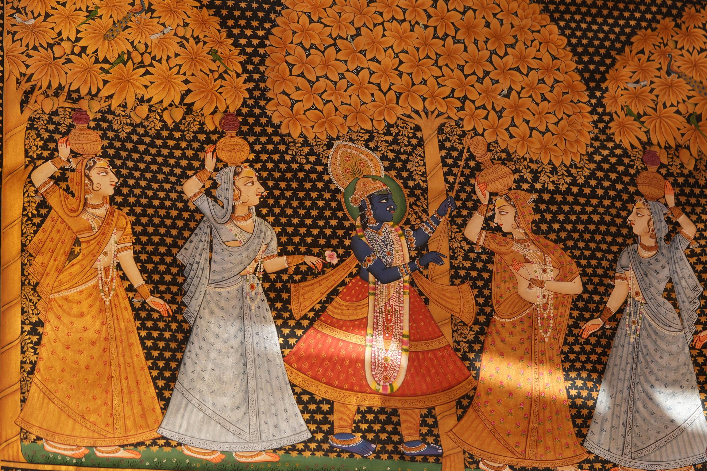 - Gold-leaf embossed Pichhwais from Rajasthan