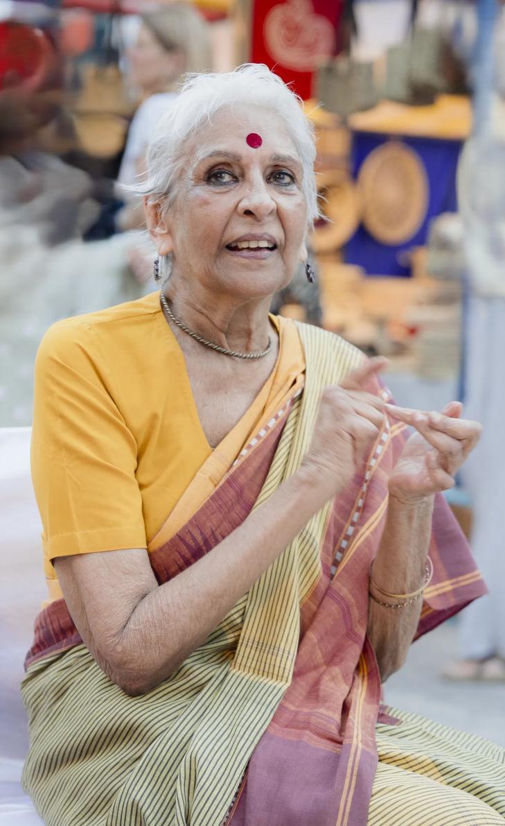 Jaitly linked crafts and calligraphy through an exhibition called Akshara, combining Crafts, Textiles, Arts and Calligraphy designed and created by craftspeople of her organisation.
