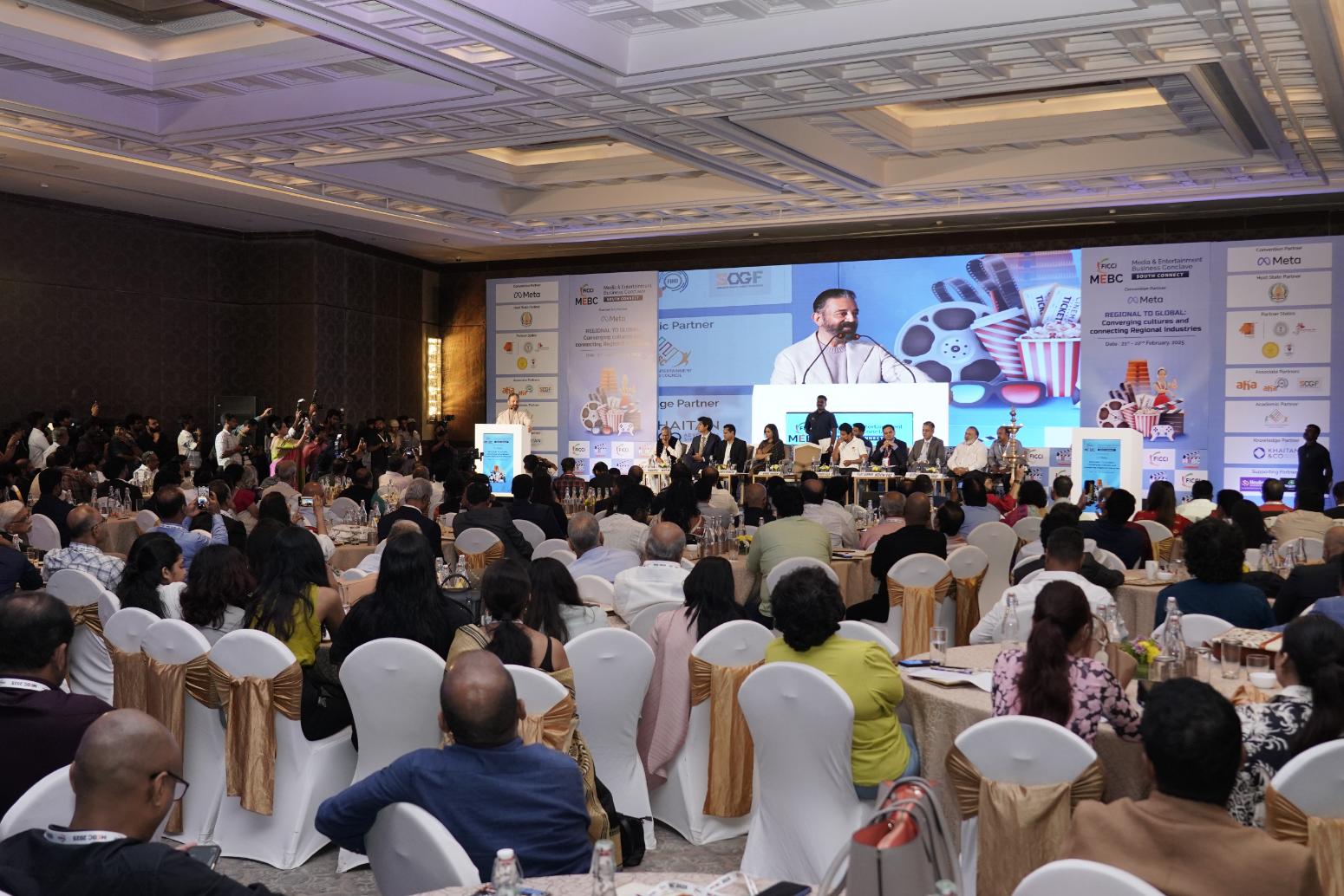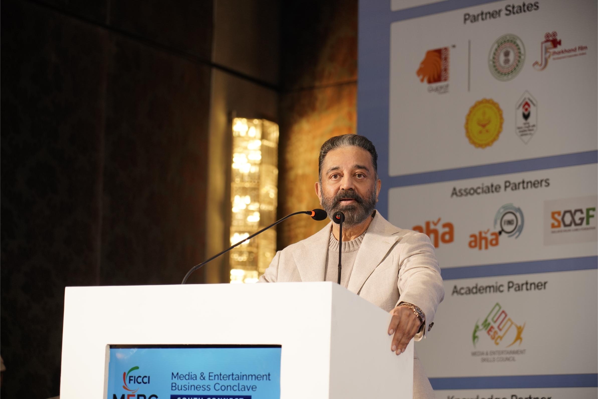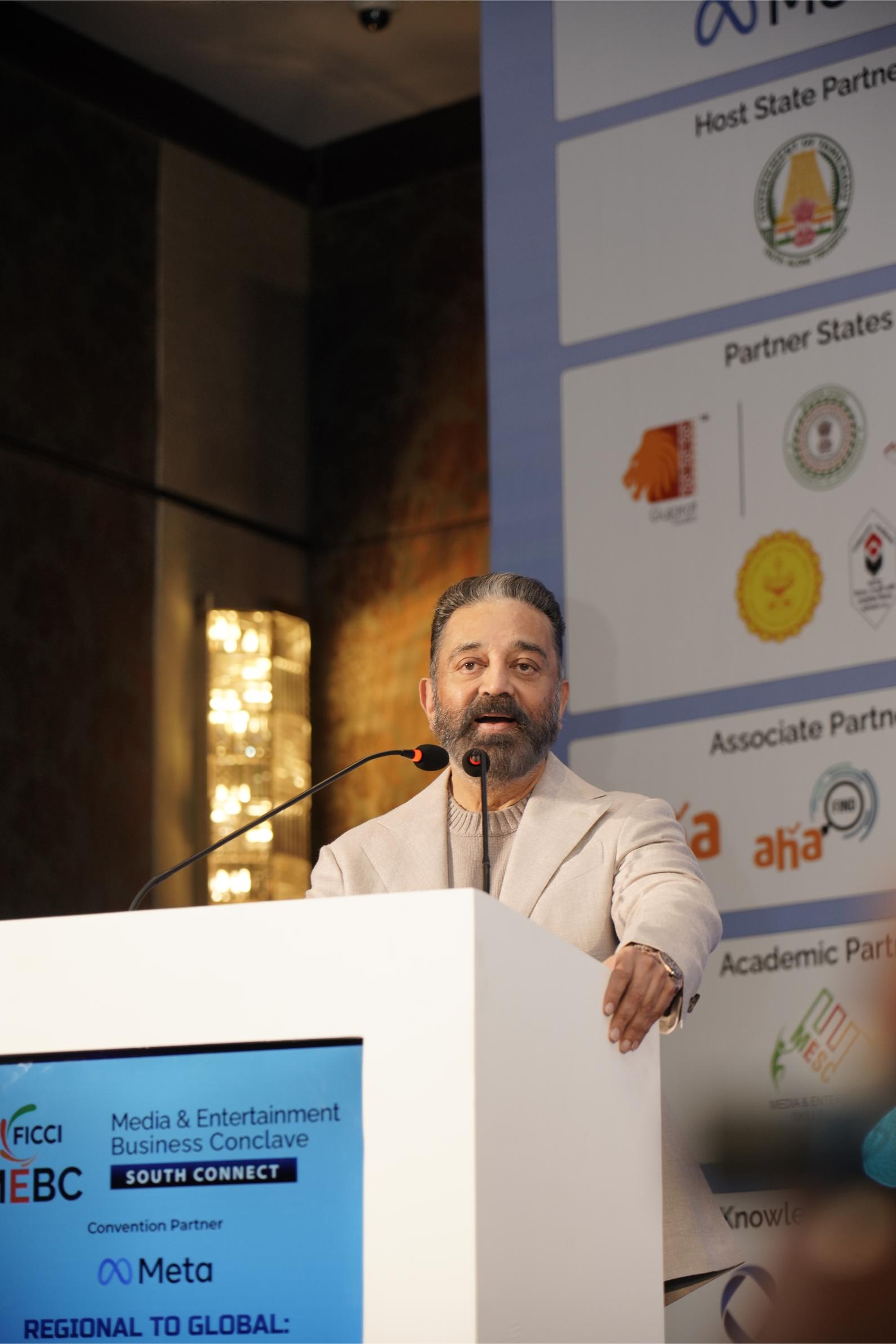 FICCI ஊடக மற்றும் பொழுதுபோக்கு குழுவின் தலைவரும், ஜியோஸ்டார் பொழுதுபோக்கு – தலைமை நிர்வாக அதிகாரியுமான கெவின் வாஸ் பேசுகையில், “தென்னிந்திய பொழுதுபோக்கு துறை நாடு தழுவிய வளர்ச்சியை அடைந்து, உலகளாவிய கவனத்தையும் ஈர்த்துள்ளது, இதற்கு உதாரணமாக திரு. கமல்ஹாசன் போன்ற பிரபலங்கள் உள்ளனர். அவர்களின் படங்கள் பல ஆண்டுகளாக எல்லைகளை கடந்து வெற்றி பெற்றுள்ளன. ஆர் ஆர் ஆர் மற்றும் கே ஜி எஃப்-2 போன்ற படங்களாலும், தமிழ் சினிமாவின் கதைசொல்லலாலும் கொரோனா பெருந்தொற்றுக்கு பிந்தைய திரைத்துறை மறுமலர்ச்சி, இந்தியாவின் பொழுதுபோக்குத் துறையை தொடர்ந்து முன்னெடுத்து செல்கிறது.