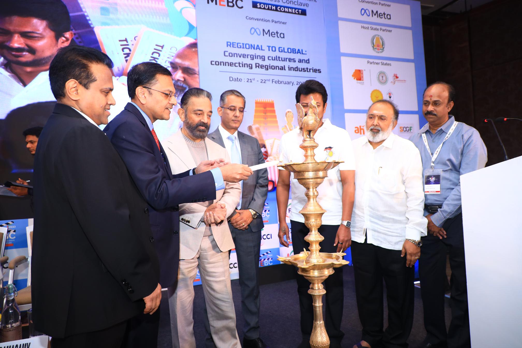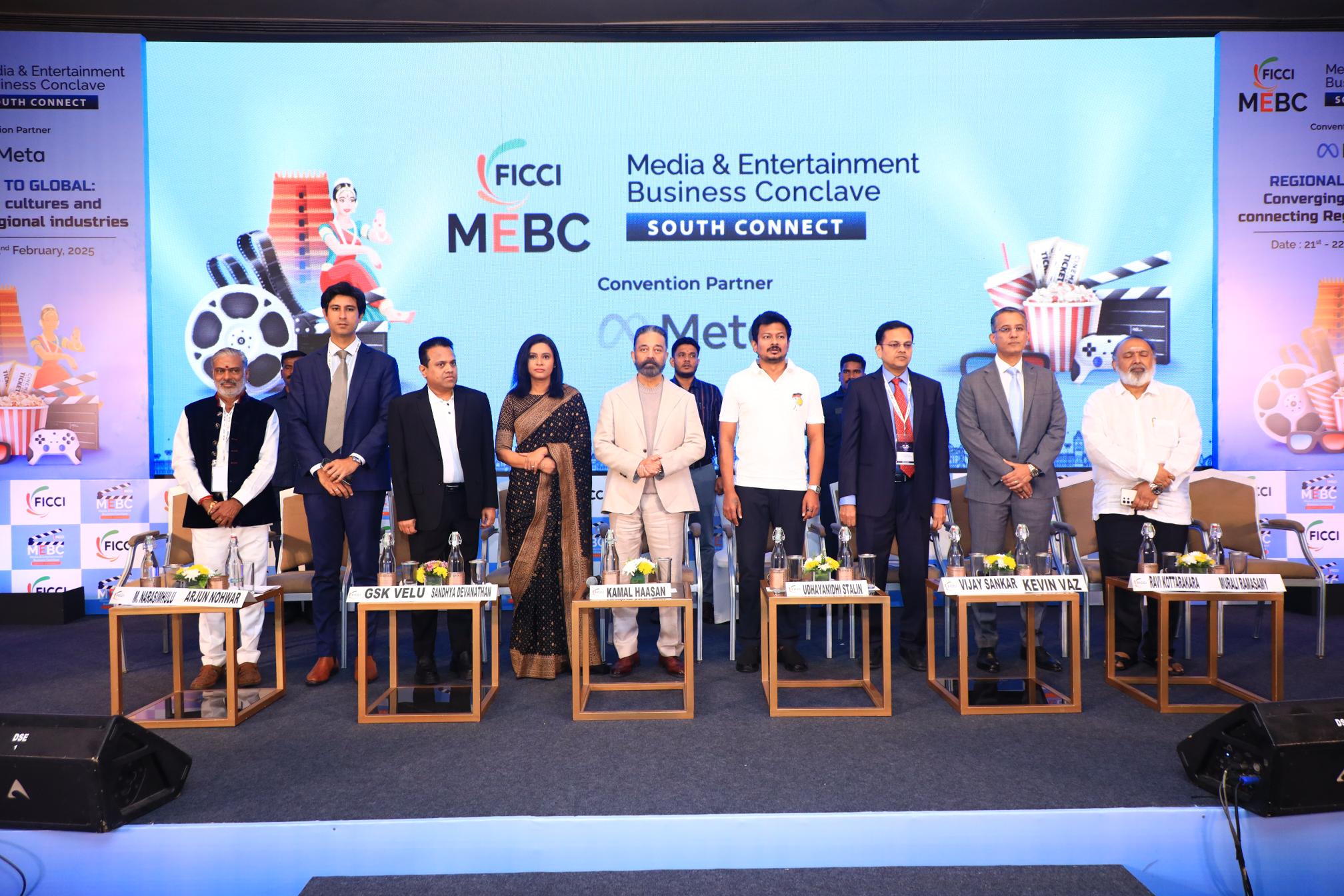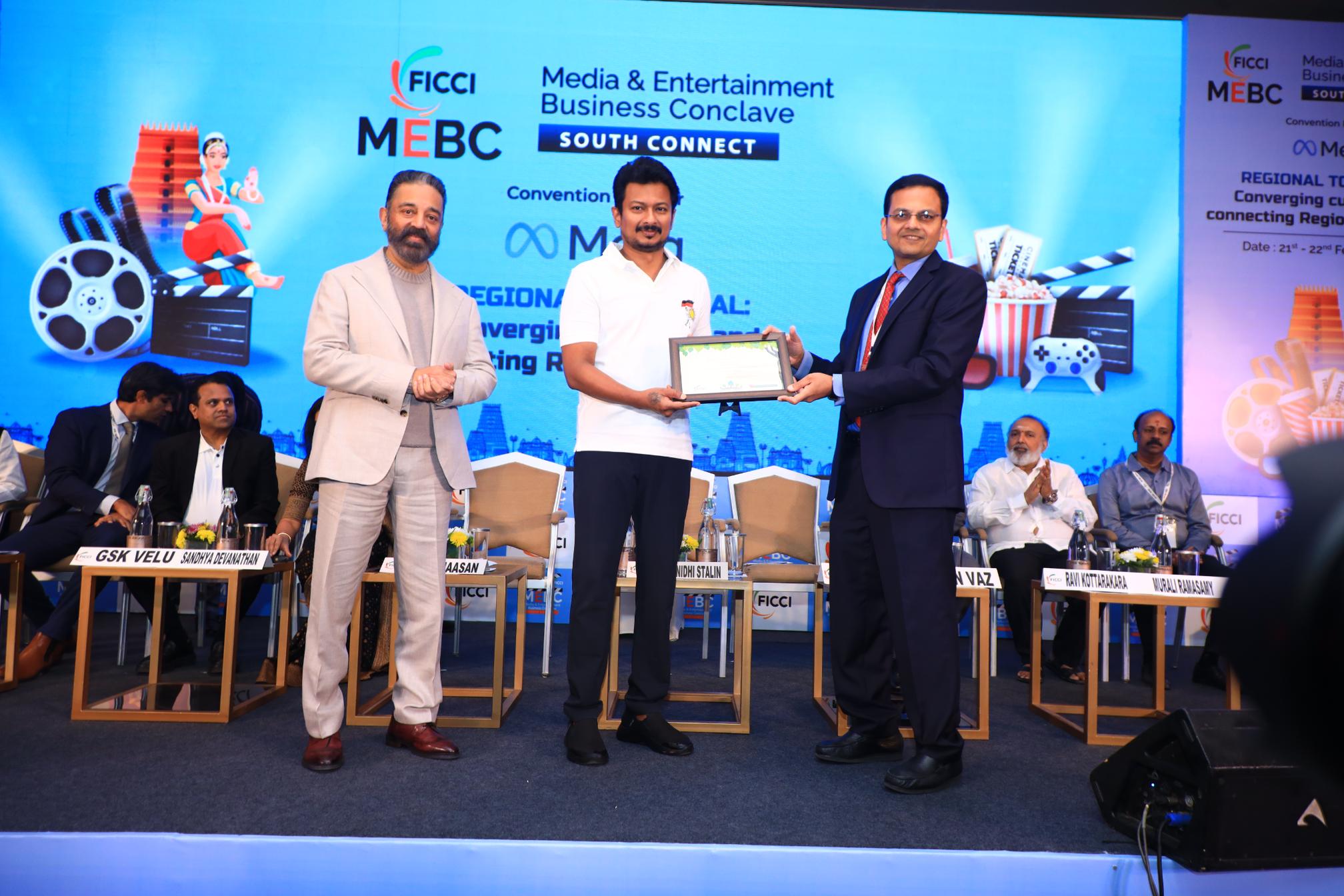 சென்னையில் நடைபெற்ற ‘ஃபிக்கி (FICCI) ஊடகம் மற்றும் பொழுதுபோக்கு வணிக மாநாடு (MEBC)–சவுத் கனெக்ட் 2025’-ஐ தமிழ்நாடு துணை முதலமைச்சர் திரு உதயநிதி ஸ்டாலின், நடிகர் மற்றும் இயக்குநர் கமல் ஹாசனுடன் இணைந்து தொடங்கி வைத்தார். இந்நிகழ்ச்சியில் FICCI ஊடகம் மற்றும் பொழுதுபோக்கு (தெற்கு) அமைப்பின் தலைவராக கமல் ஹாசன் அறிவிக்கப்பட்டார்.