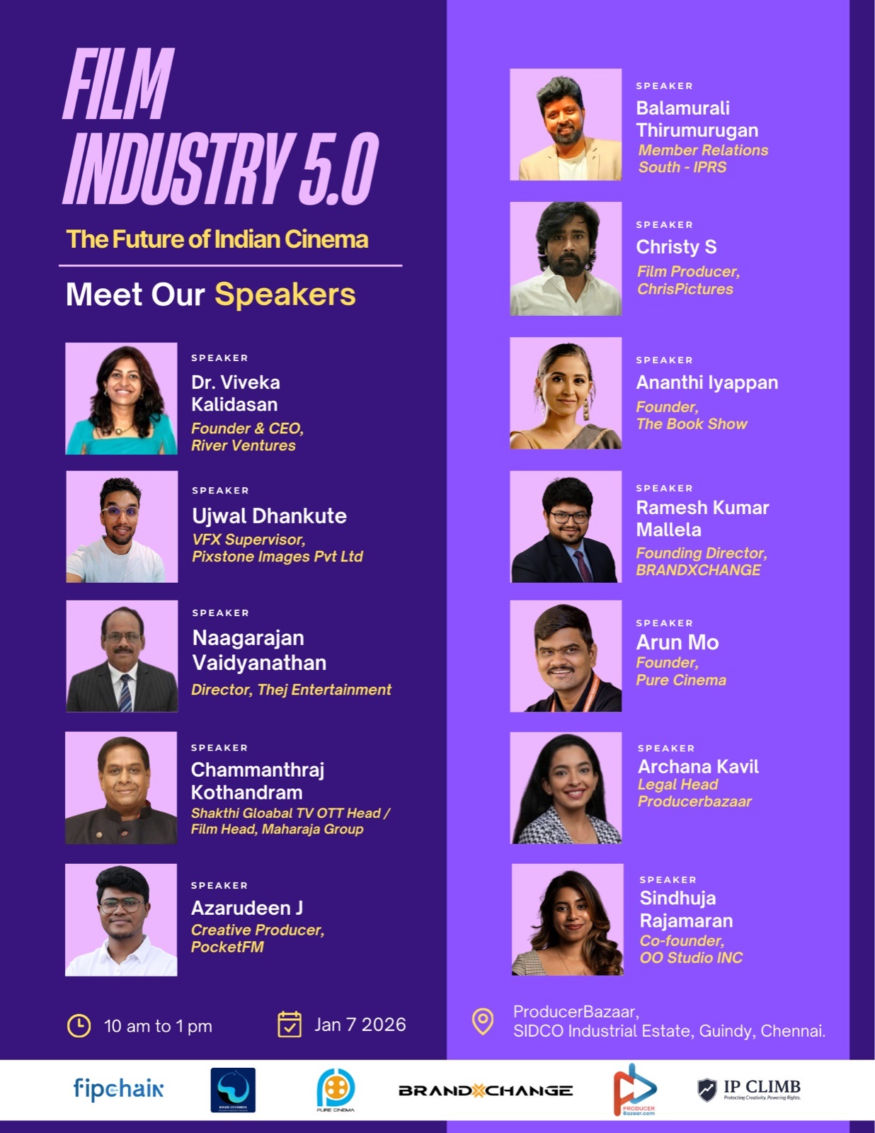 A crucial event titled “Film Industry 5.0: The Future of Indian Cinema” was jointly organised by Fipchain, River Ventures, Pure Cinema, Brand Change, IP Climb, and Producer Bazaar, was held in Chennai on Wednesday (January 7) at the Producer Bazaar office located in the Guindy SIDCO Industrial Estate.