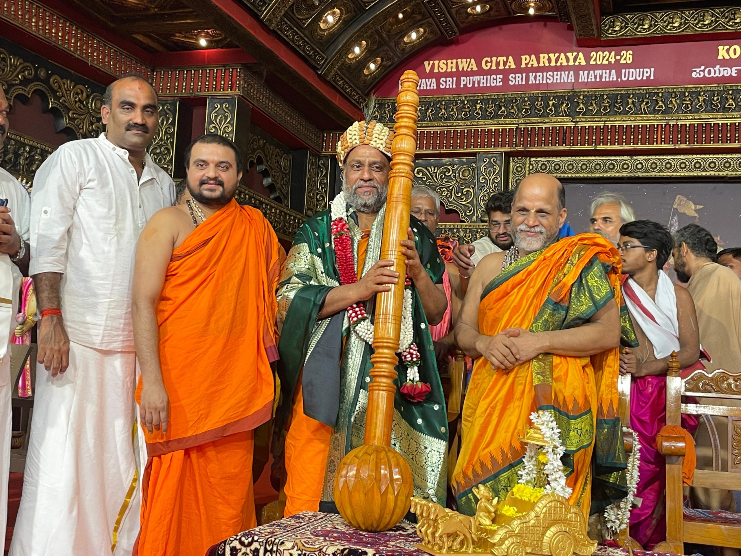 On the auspicious occasion of H.H. Sri Subudhendra Teertha Swamiji’s visit to Udupi, a grand programme was held at the historic Rajangana. During the event, H.H. Sri Sugunendra Teertha Swamiji, Peethadipathi of Puttige Mutt, conferred the honorary title “Abhinava Parimalacharya” upon H.H. Sri Subudhendra Teertha Swamiji, in recognition of His scholarly excellence and spiritual leadership.