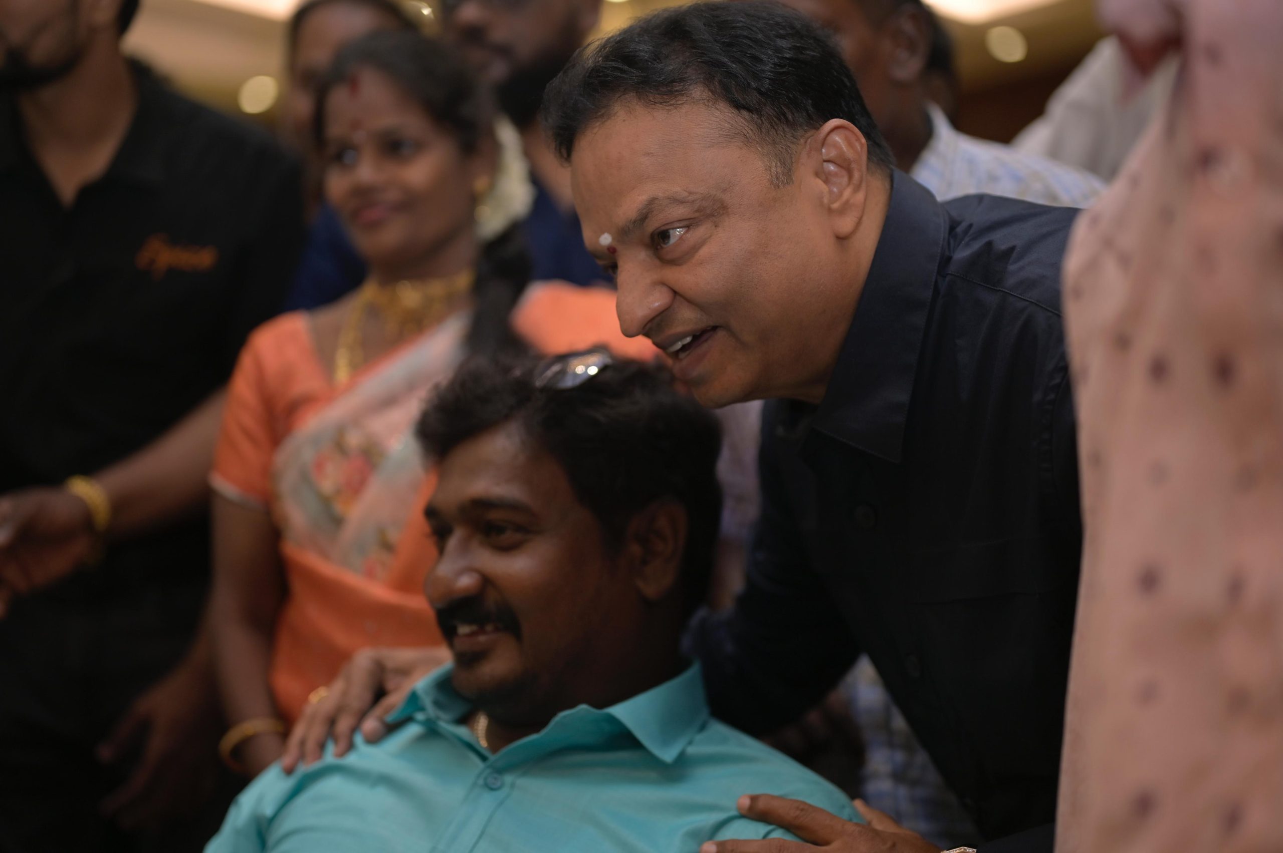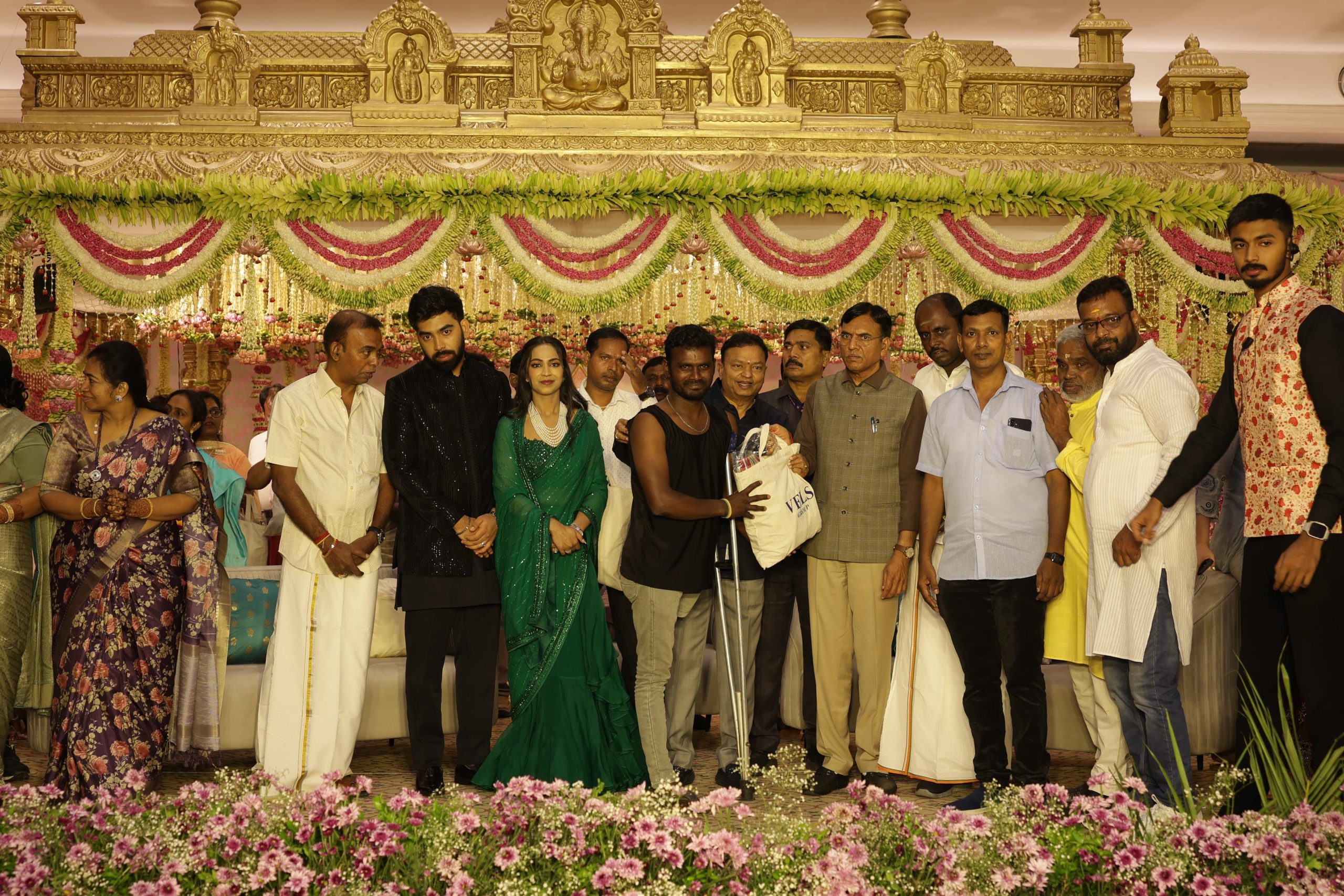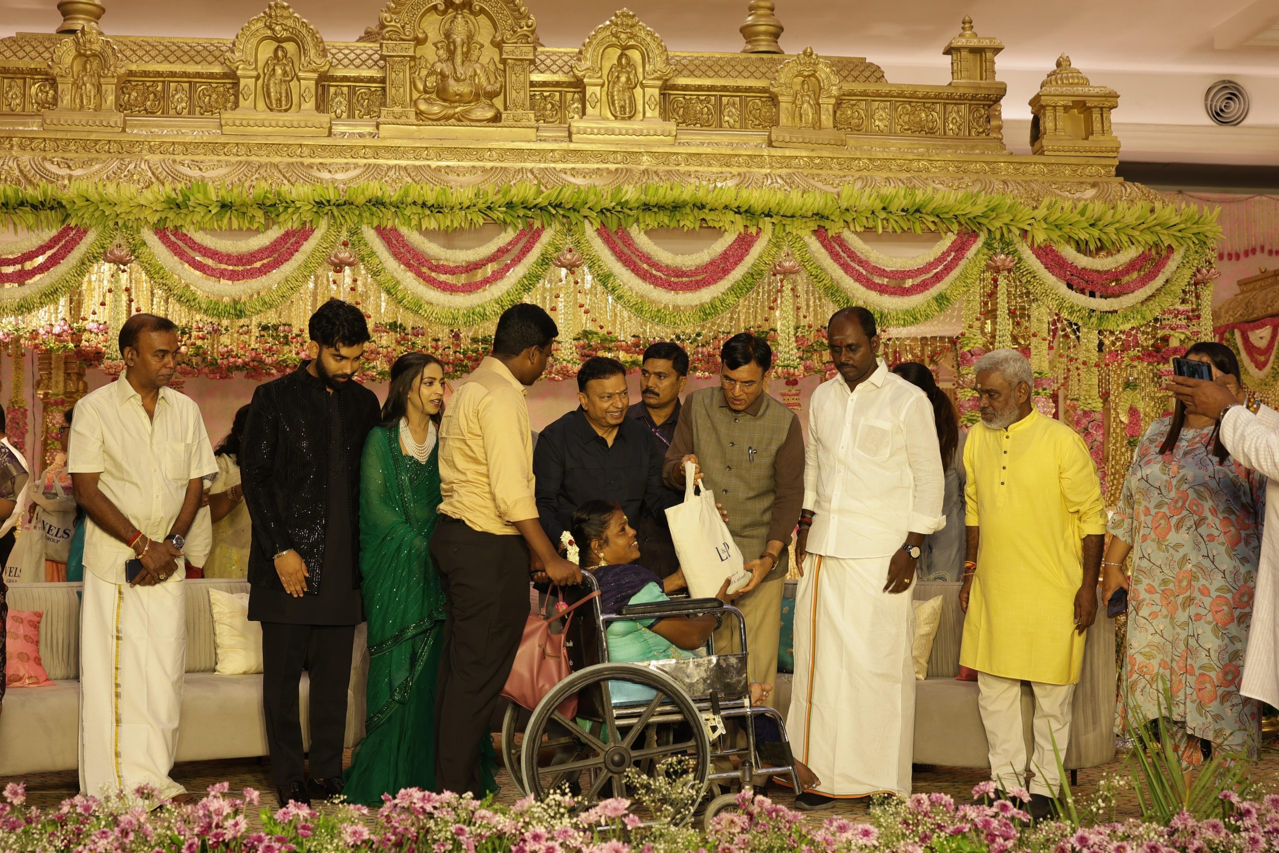 இந்த திருமணத்தையொட்டி ஆதரவற்ற மற்றும் மாற்றுத்திறனாளி மாணவ மாணவிகள், முதியோர் என 1500 பேருக்காக மட்டும் நேற்று மாலை சிறப்பு திருமண வரவேற்பு நடைபெற்றது. ஆதரவற்ற குழந்தைகள், முதியோர்கள், சிறப்புக்குழந்தைகளின் நடனமும் இசைக்கச்சேரி மற்றும் விருந்துடன் ஒவ்வொருவர்களுக்கும் பரிசு பொருட்களை வழங்கி தனது மகிழ்ச்சியை பகிர்ந்துக்கொண்டார்.