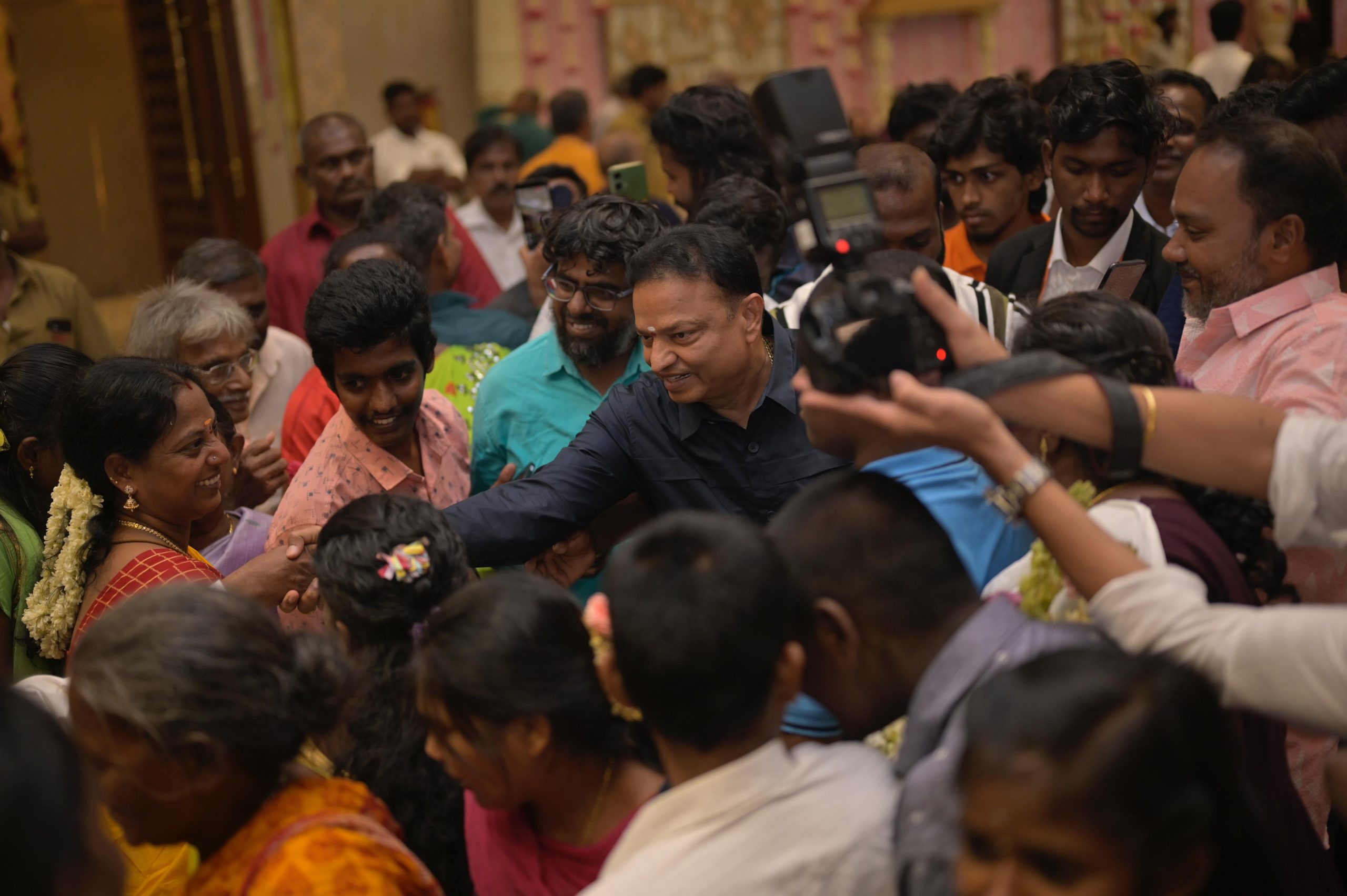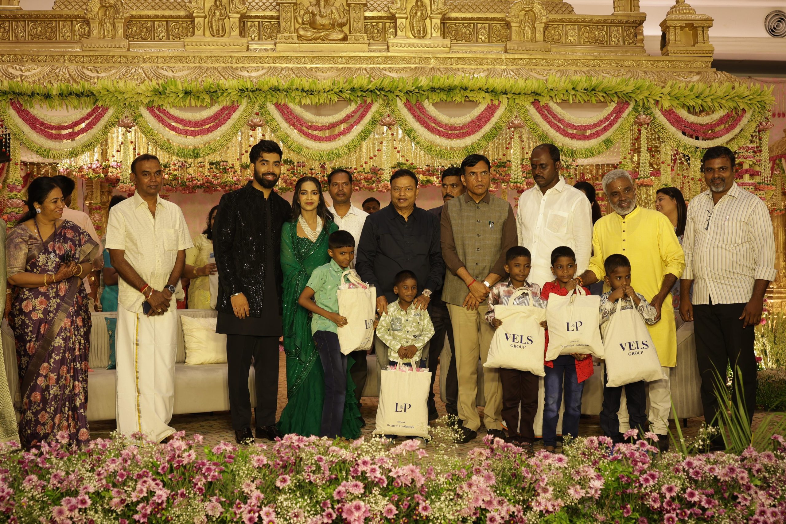 இதில் அரசியல், சினிமா, ஊடகம், கல்வியாளர்கள், தங்க வைர நகைக்கடை உரிமையாளர்கள் என பலத்துறைகளை சேர்ந்த பிரபலங்கள் அனைவரும் மணமக்களை வாழ்த்த வந்திருந்தனர்.
