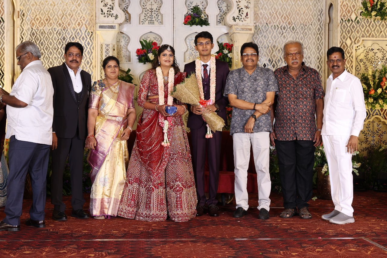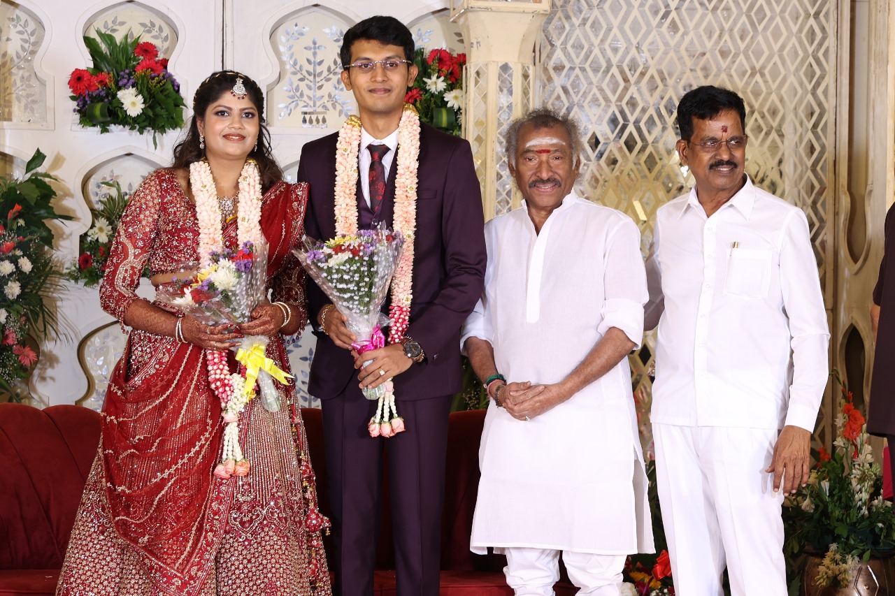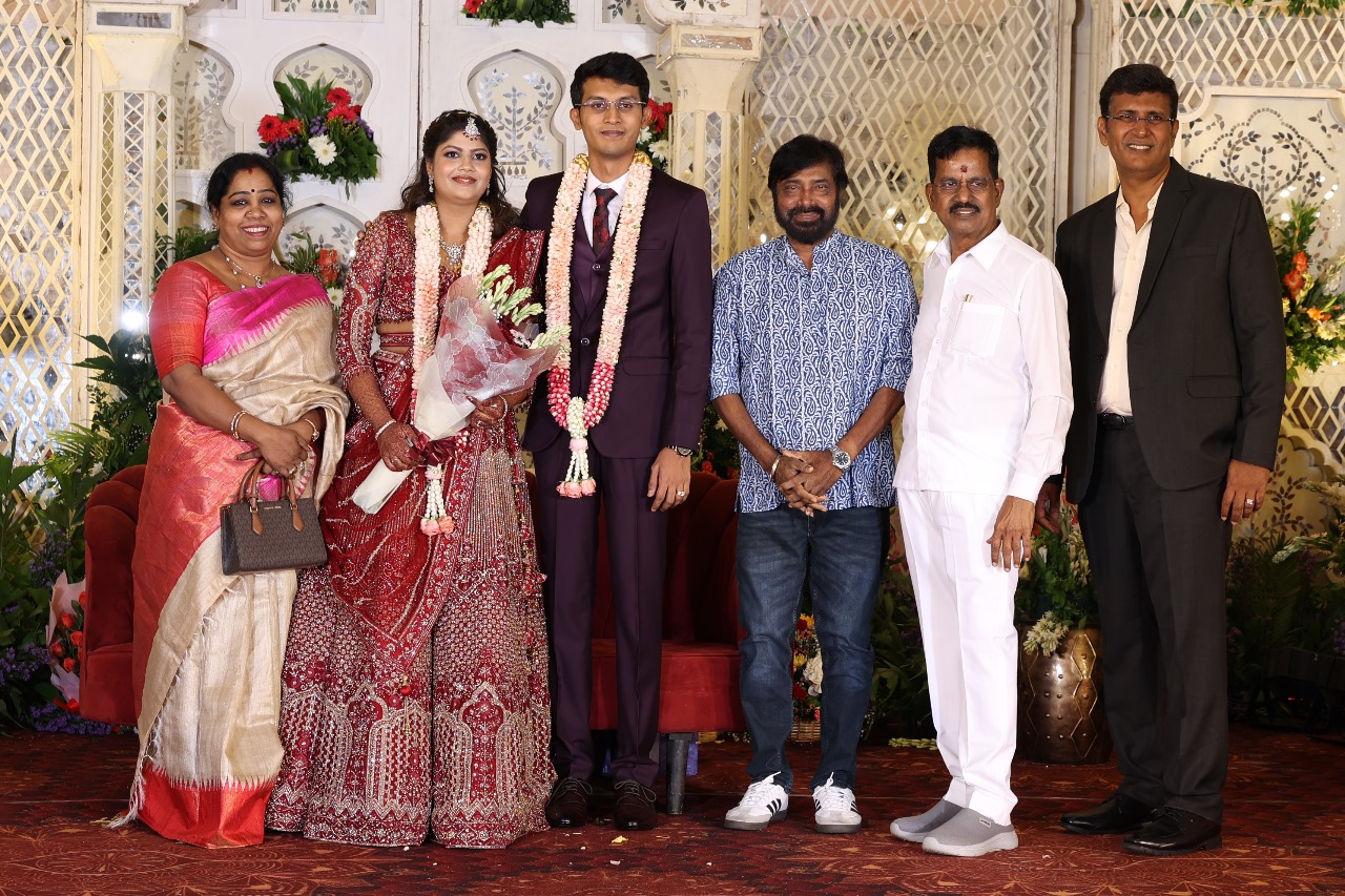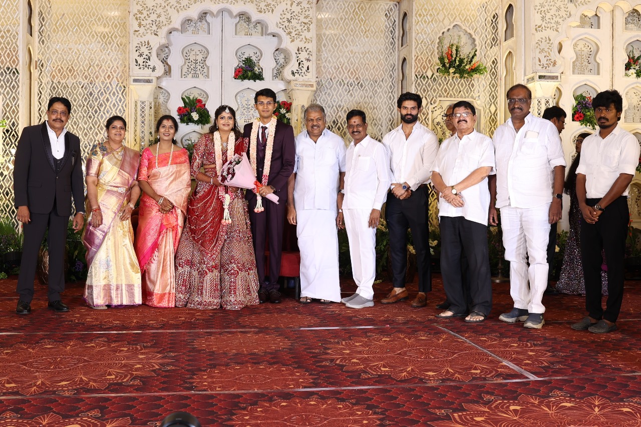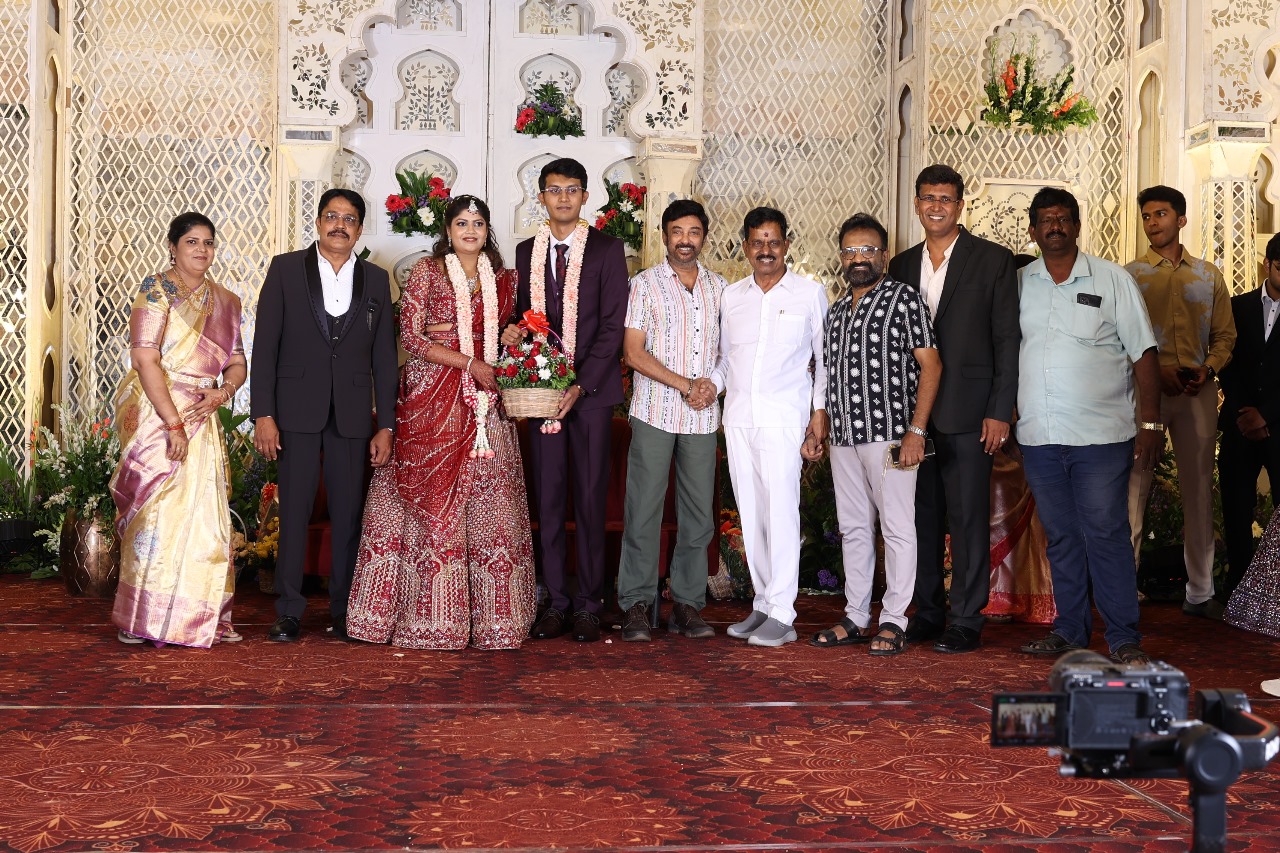 கலைப்புலி S தாணு அவர்களின் பேரன் ஆதித்யன் – பிரித்திகா திருமணம் (05.06.2025)  காலை சென்னை எழும்பூர் ராணி மெய்யம்மை மண்டபத்தில் நடை பெற்றது . இதில் கலந்து கொண்ட சிறப்பு விருந்தினர்கள்