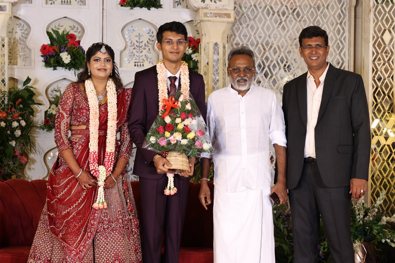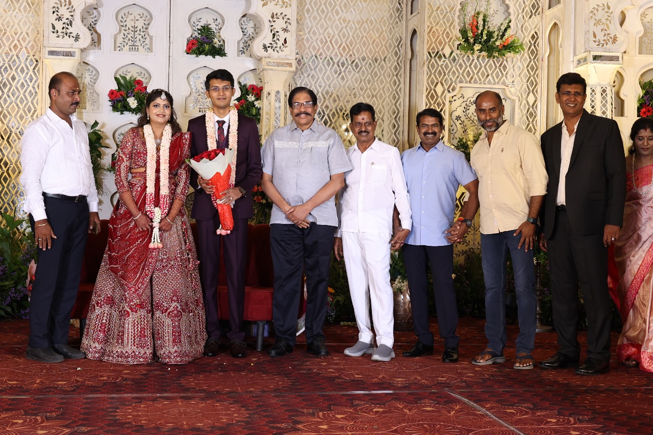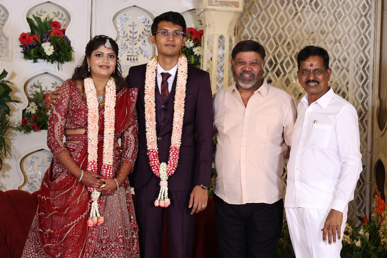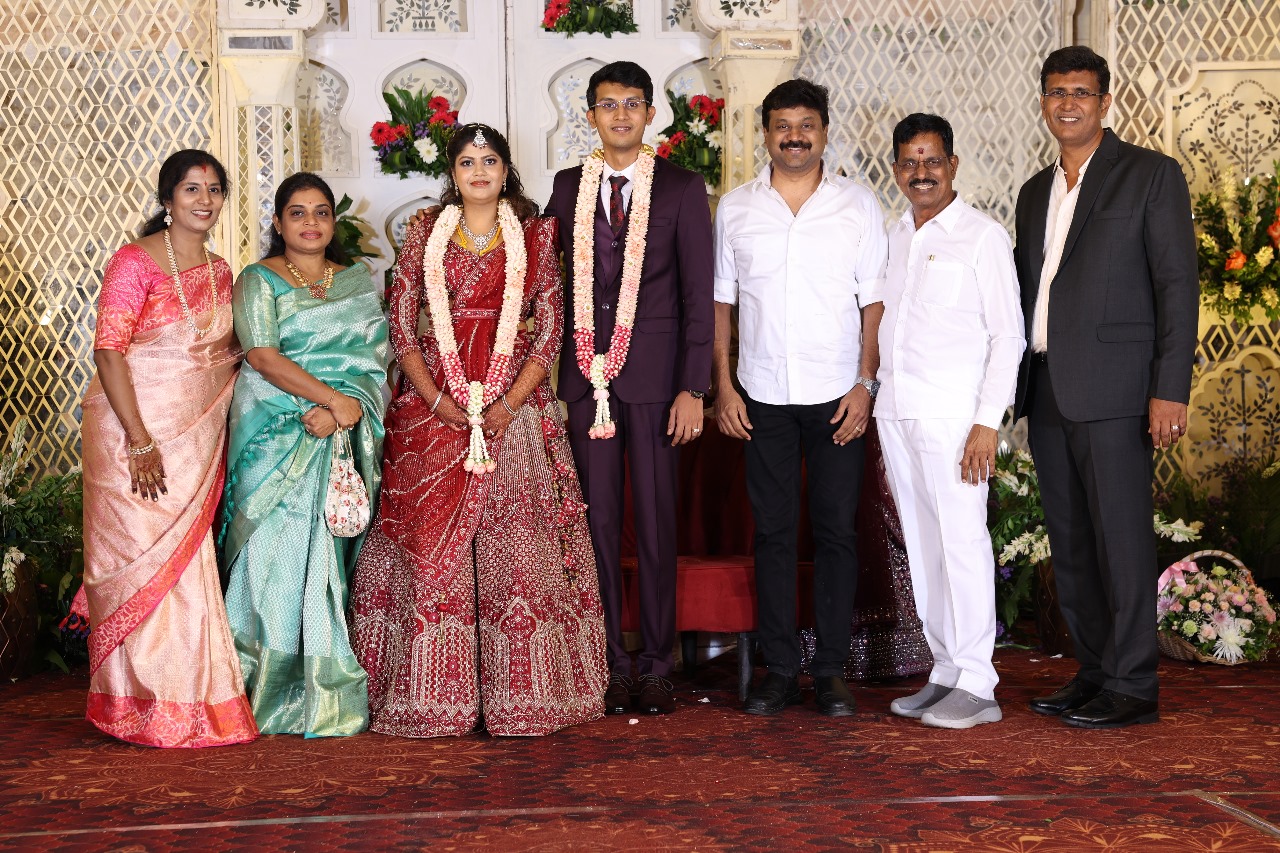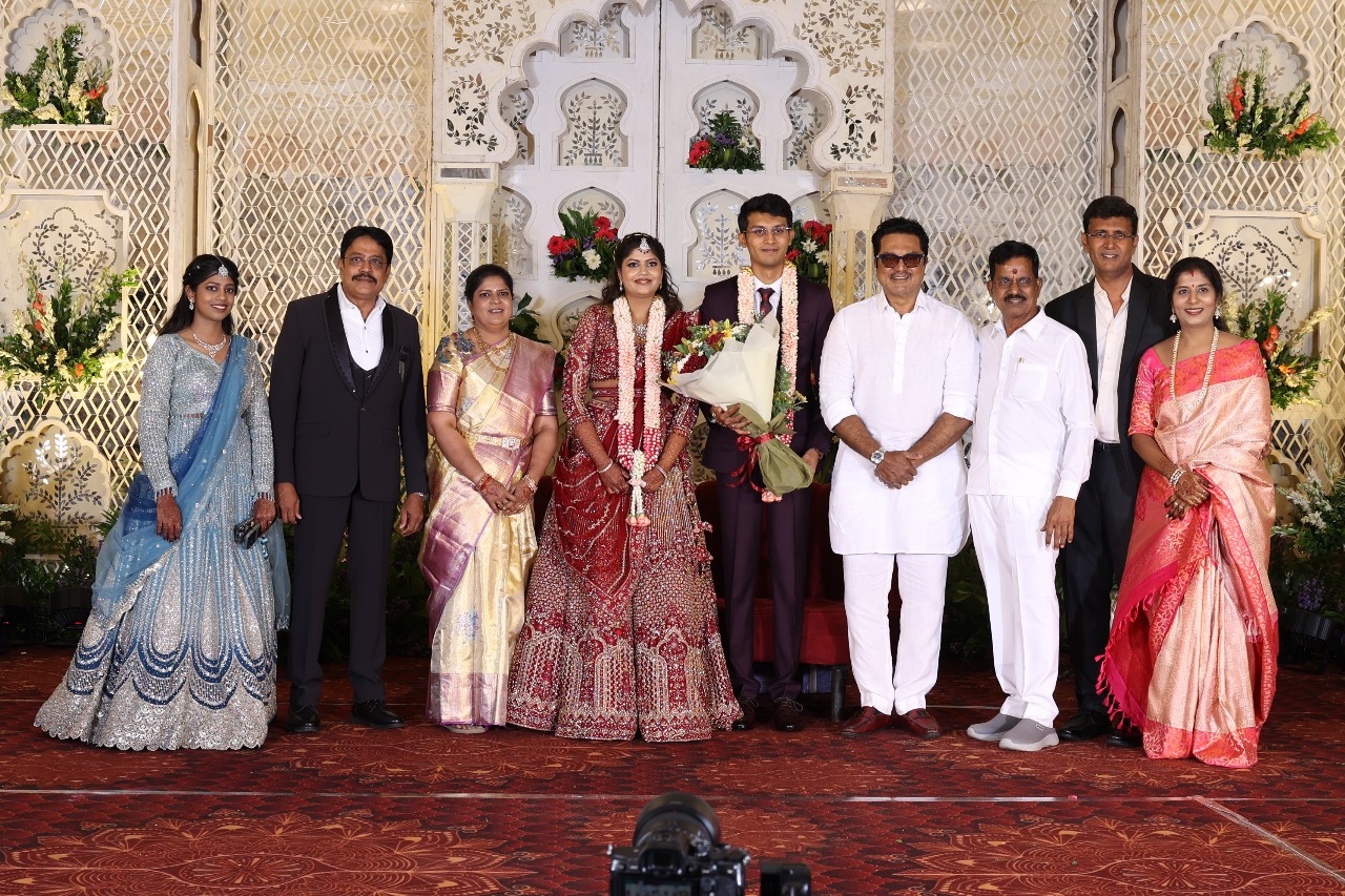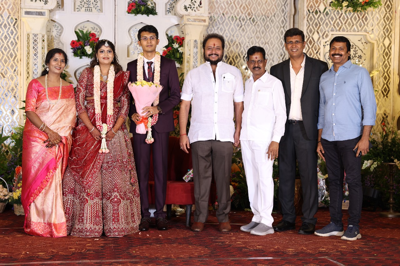 கலைப்புலி S தாணு அவர்களின் பேரன் ஆதித்யன் – பிரித்திகா திருமணம் (05.06.2025)  காலை சென்னை எழும்பூர் ராணி மெய்யம்மை மண்டபத்தில் நடை பெற்றது . இதில் கலந்து கொண்ட சிறப்பு விருந்தினர்கள்