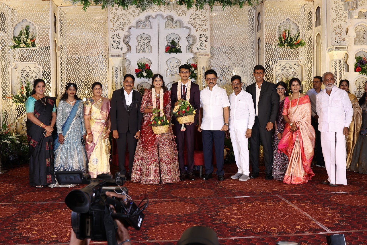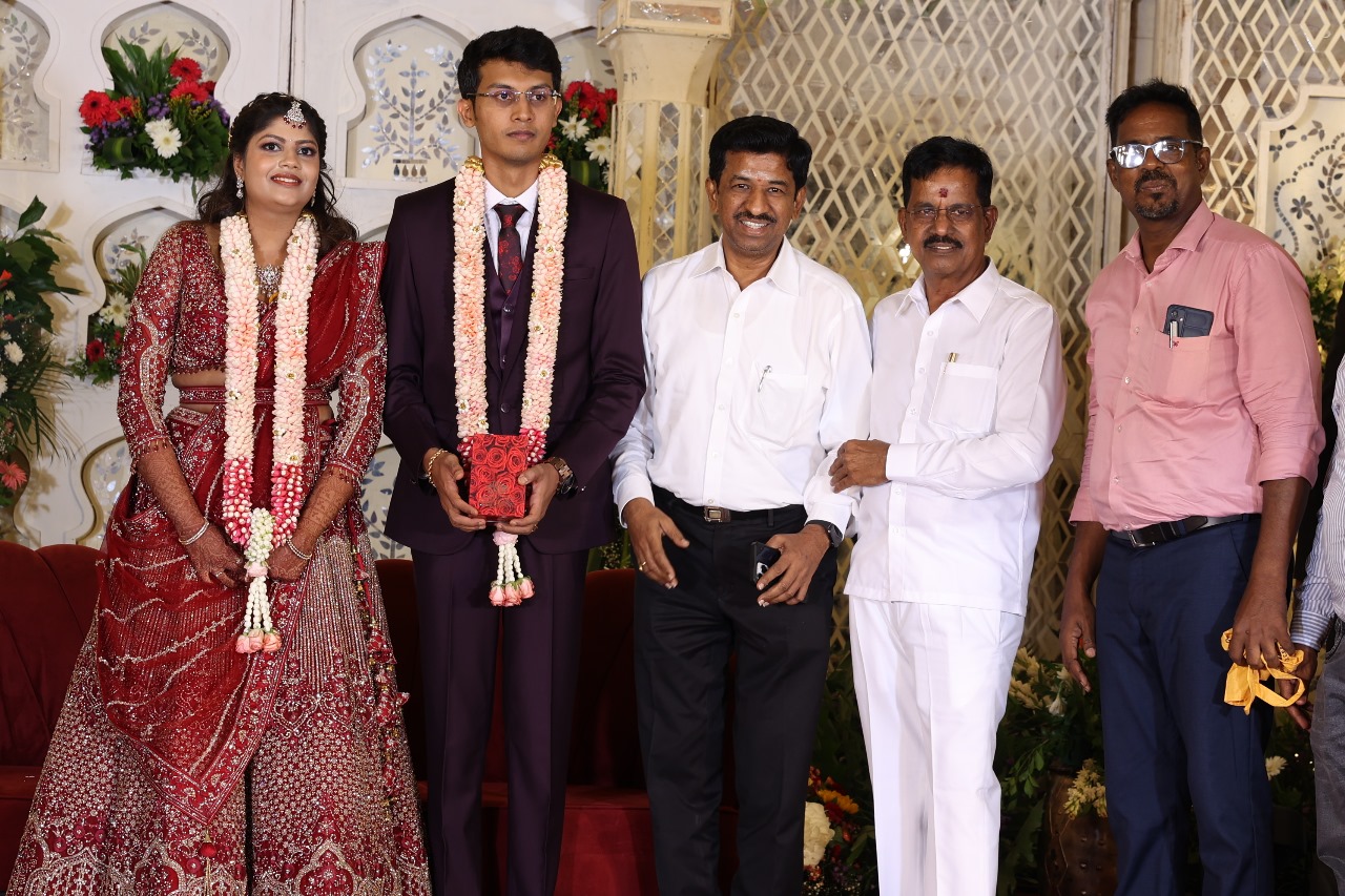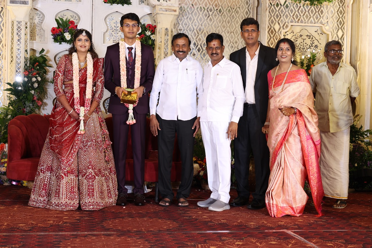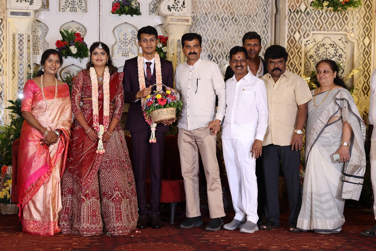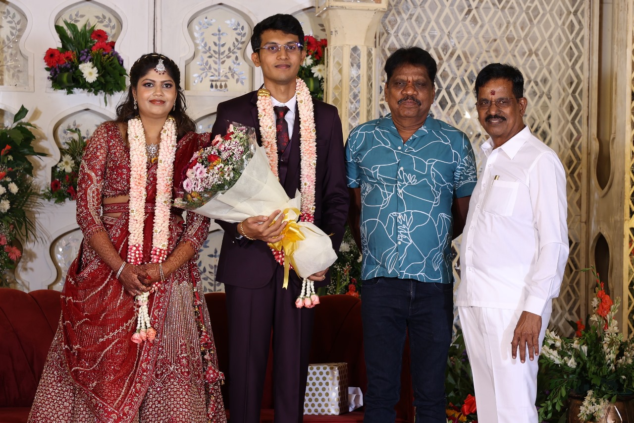 கலைப்புலி S தாணு அவர்களின் பேரன் ஆதித்யன் – பிரித்திகா திருமணம் (05.06.2025)  காலை சென்னை எழும்பூர் ராணி மெய்யம்மை மண்டபத்தில் நடை பெற்றது . இதில் கலந்து கொண்ட சிறப்பு விருந்தினர்கள்