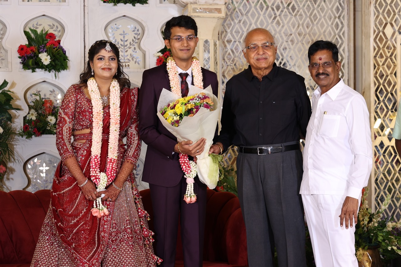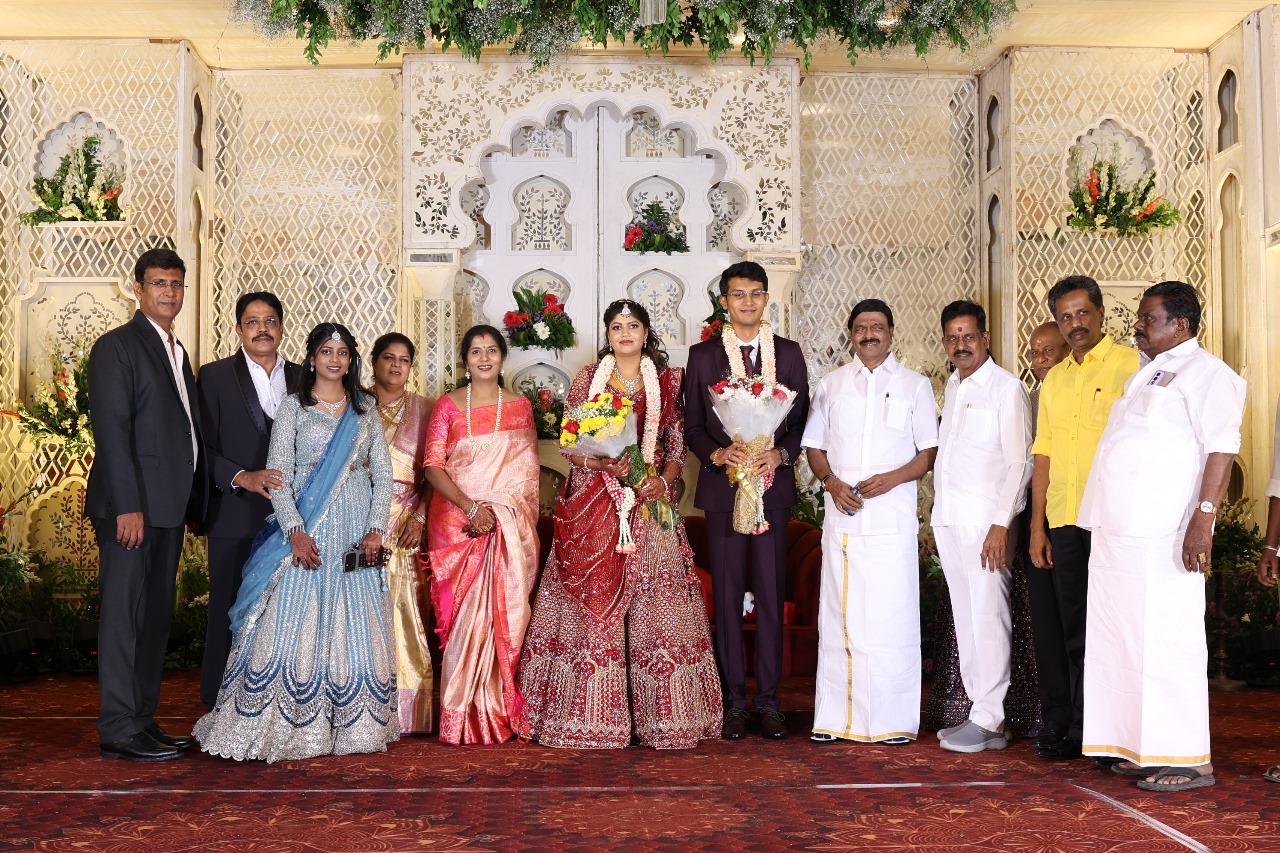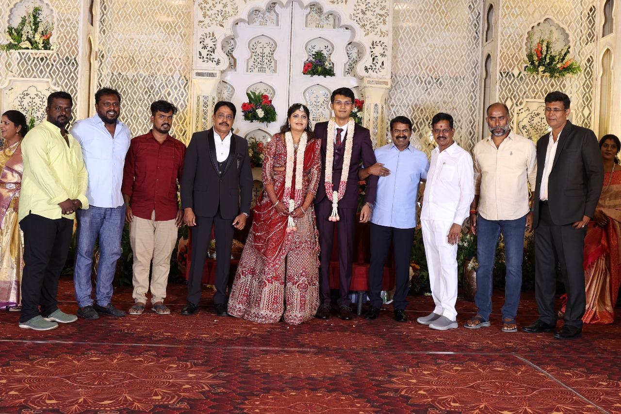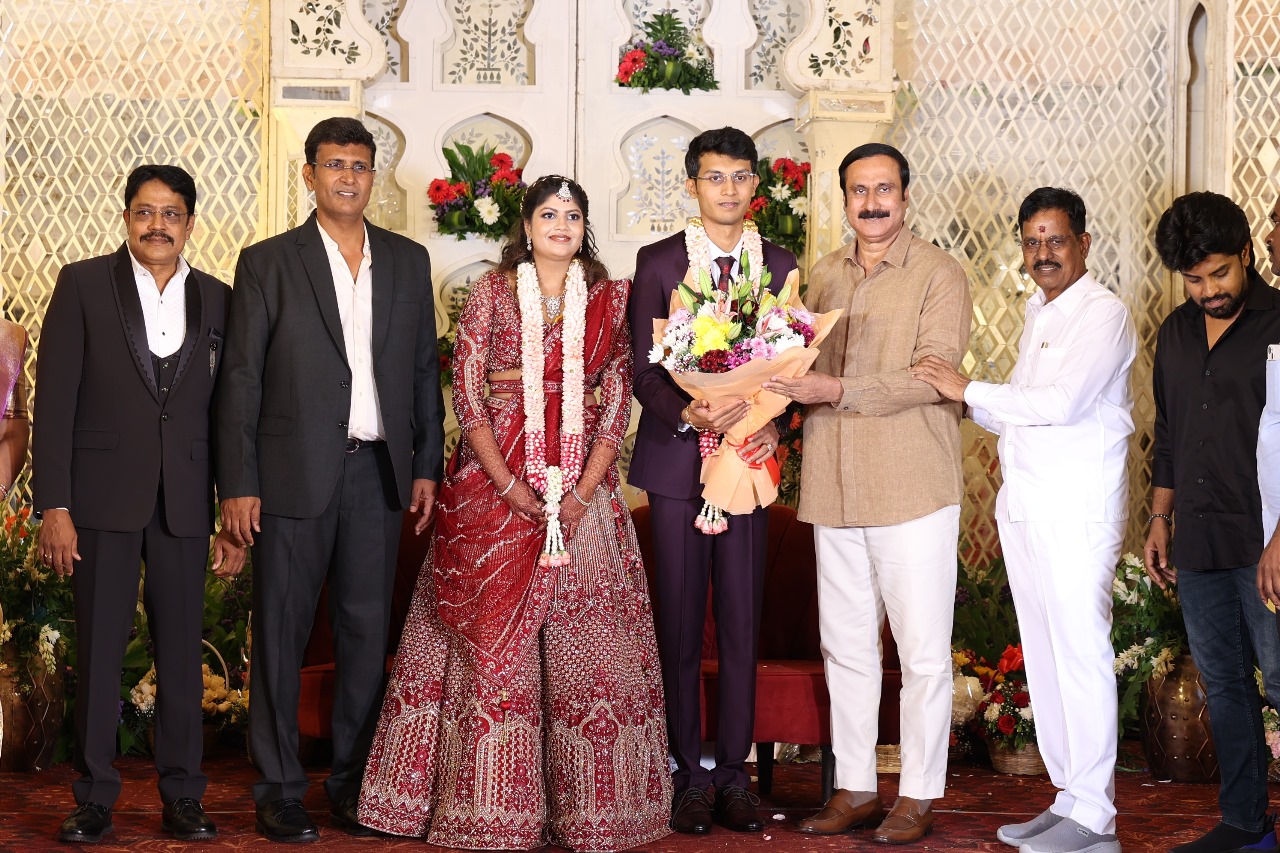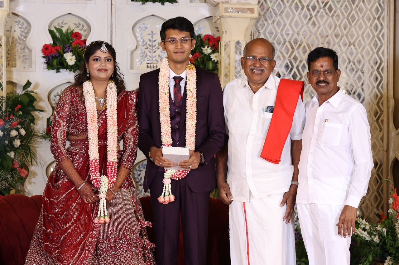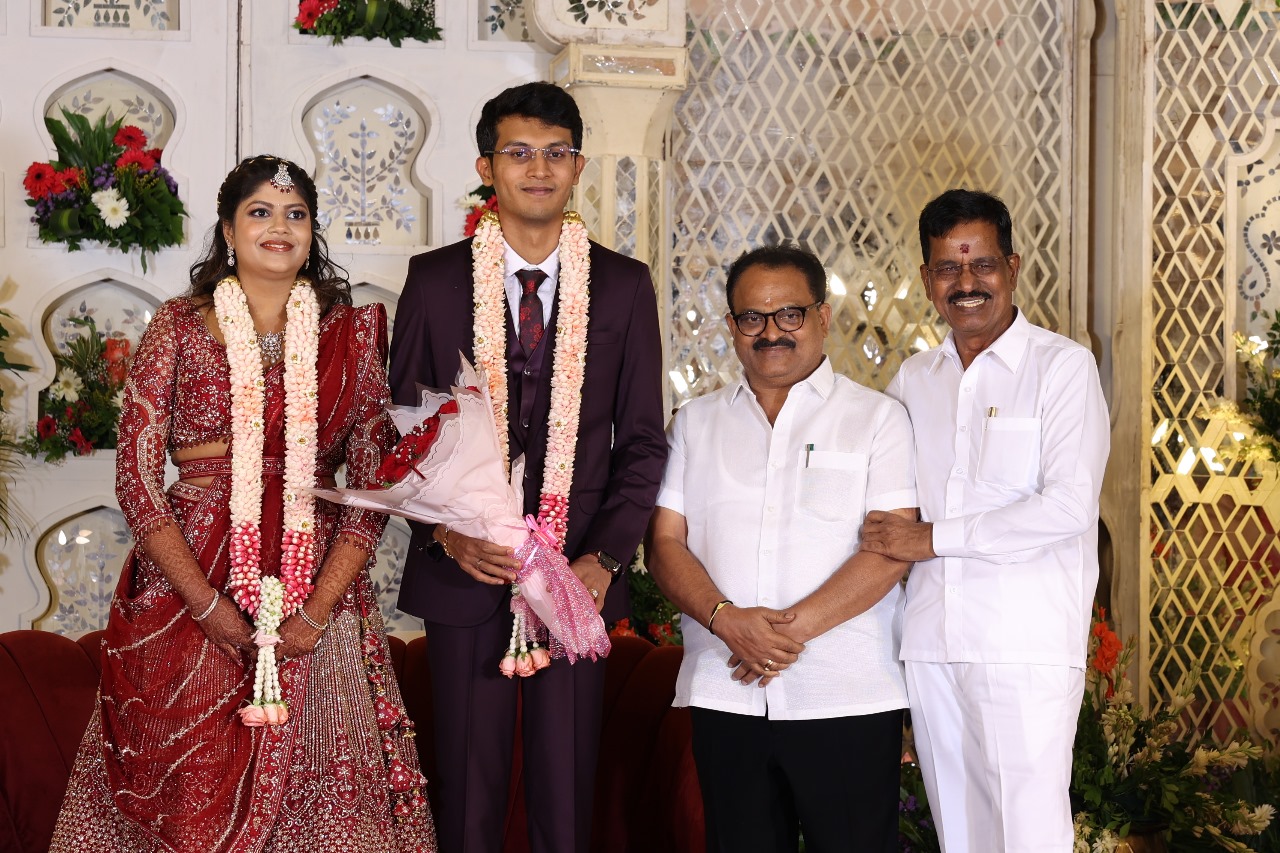 கலைப்புலி S தாணு அவர்களின் பேரன் ஆதித்யன் – பிரித்திகா திருமணம் (05.06.2025)  காலை சென்னை எழும்பூர் ராணி மெய்யம்மை மண்டபத்தில் நடை பெற்றது . இதில் கலந்து கொண்ட சிறப்பு விருந்தினர்கள்