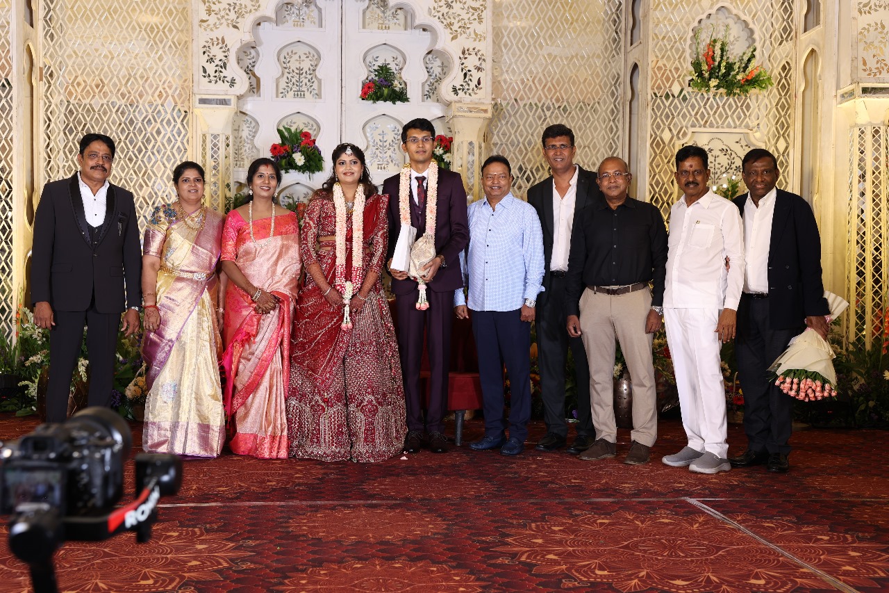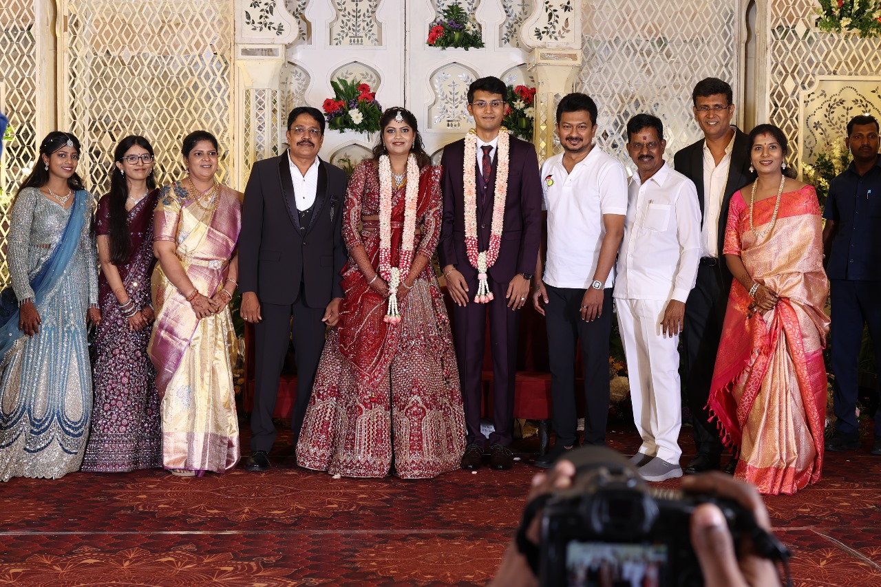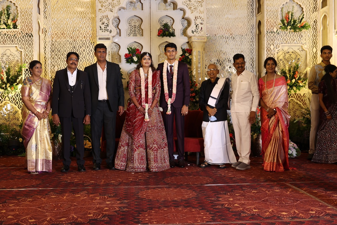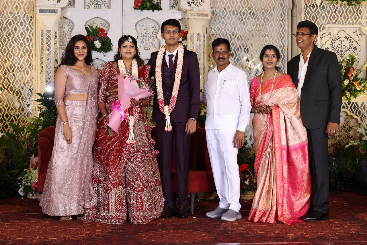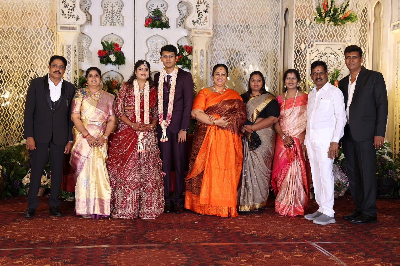 கலைப்புலி S தாணு அவர்களின் பேரன் ஆதித்யன் – பிரித்திகா திருமணம் (05.06.2025)  காலை சென்னை எழும்பூர் ராணி மெய்யம்மை மண்டபத்தில் நடை பெற்றது . இதில் கலந்து கொண்ட சிறப்பு விருந்தினர்கள்