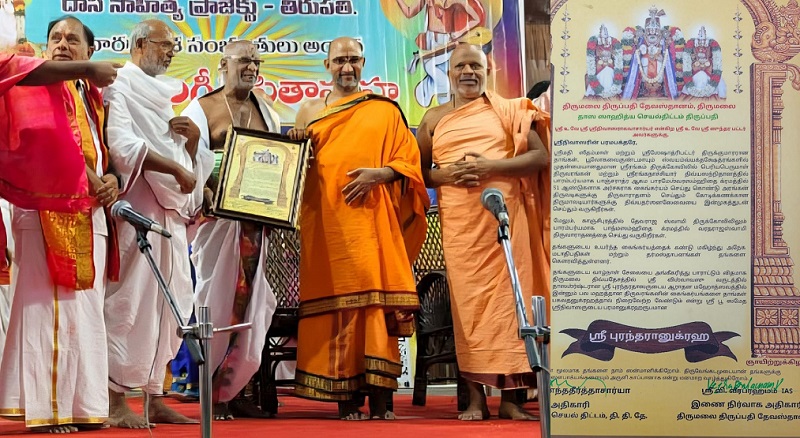 திருமலை திருப்பதி தேவஸ்தானம் மற்றும் தாஸ ஸாஹித்ய செயல்திட்டம் இணைந்து நடத்திய நிகழ்ச்சியில் “வாழ்நாள் சாதனை “”ஸ்ரீபுரந்தரானுக்ரஹ ” விருது (“Lifetime Achievement” “Sripurandaranugraha” Award at a function jointly organized by Tirumala Tirupati Devasthanams and Dasa Sahitya Project)