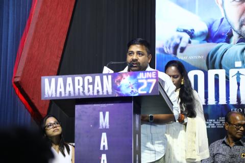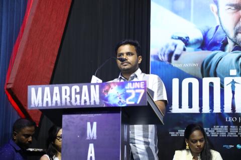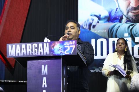 விஜய் ஆண்டனி பிலிம் கார்ப்பரேஷன் சார்பில் மீரா விஜய் ஆண்டனி தயாரித்துள்ள படம் ‘மார்கன்’. இதில் விஜய் ஆண்டனி கதாநாயகனாக நடித்துள்ளார். பல படங்களுக்கு எடிட்டிங் செய்துள்ள முன்னணி எடிட்டர் லியோ ஜான் பால் இந்தப் படத்தை இயக்கியுள்ளார். இதில் விஜய் ஆண்டனியின் சகோதரர் அஜய் திஷான் முக்கிய வில்லனாக அறிமுகமாகிறார். மேலும் சமுத்திரக்கனி, மகாநதி சங்கர், பிரித்திகா, வினோத் சாகர், பிரிகிதா, அர்ச்சனா, கனிமொழி உட்பட பலர் நடித்துள்ளனர். படத்தின் இசையையும் விஜய் ஆண்டனியே மேற்கொண்டுள்ளார். சஸ்பென்ஸ் திரில்லராக உருவாகியுள்ள இப்படம் வரும் ஜூன் மாதம் 27 ஆம் தேதி வெளியாக உள்ளது. இந்த நிலையில் படத்தின் இசை மற்றும் ட்ரெய்லர் வெளியீட்டு விழா பிரசாத் லேபில் 26.5.25 மாலை நடைபெற்றது. இந்த விழாவில் சிறப்பு விருந்தினர்களாக இயக்குனர்கள் சசி, நலன் குமாரசாமி, ரவிக்குமார், மிலிந்த் ராவ், சி .வி. குமார், ரோகினி வெங்கடேசன், அருண் பிரபு, ஜோஸ்வா சேதுராமன், பெப்பின் ஜார்ஜ் மற்றும் தயாரிப்பாளர்கள் தனஞ்ஜயன், டி சிவா ஆகியோர் கலந்து கொண்டனர்.