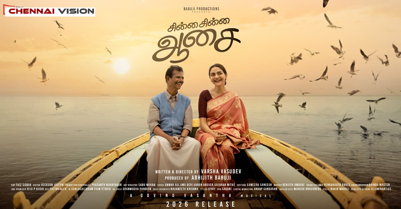The second look of Chinna Chinna Aasai, directed by Varsha Vasudev with Madhubala and Indrans in the lead roles, has been released. The second-look poster was unveiled through actress Manju Warrier’s official social media pages. The film is produced by Abhijith Babuji under the banner of Babuji Productions. After the widely noticed short film Ente Narayanikku, Varsha Vasudev is once again at the helm, and this film marks Madhubala’s return to Malayalam cinema in a strong central character after a break.