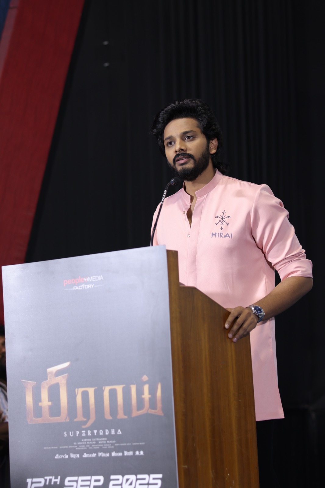 “அனைவருக்கும் வணக்கம், இங்கு நான் வருகை தந்தது எனக்கு மிகவும் மகிழ்ச்சியாக உள்ளது. மிராய் திரைப்படம் இம்மாதம் 12ம் தேதி வெளியாகிறது. நீங்கள் அனைவரும் இதுவரை இப்படத்திற்காக கொடுத்த ஒத்துழைப்பை மேலும் தருவீர்கள் என்று நம்புகிறேன். ஆக்ஷன், அட்வெஞ்சர், ஃபேண்டசி, எமோஷன் மற்றும் டிவோஷன் நிறைந்த படம் தான் மிராய்.