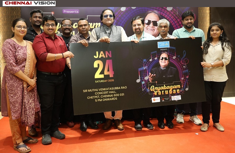 Legendary music director Bharadwaj today announced a one-of-its-kind musical concert and felicitation evening titled “Gnyabagam Varudae” at a press meet held in Chennai, marking three glorious decades of his timeless contribution to Indian film music.