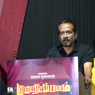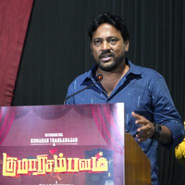 இந்த திரைப்படத்திற்கு கடவுளின் அனுகிரகம் இருக்கிறது என்பதனை நான் உணர்ந்தேன். நான் லக்கி மேன் படத்திற்காக முதலில் வைத்த பெயர் கந்தன் கருணை. ஆனால் அந்த டைட்டில் எனக்கு கிடைக்கவில்லை. நான் அடிப்படையில் ஒரு முருக பக்தன். ஒரு முறை பாம்பன் சுவாமிகள் ஆசிரமத்திற்கு சென்று முருகரை வணங்கிக் கொண்டிருந்தபோது உமது பெயரை என்னுடைய திரைப்படத்திற்கு வைக்க முடியவில்லை என வருந்தினேன். அதன் பிறகு முருகன் எனக்கு எப்படி வாய்ப்பை ஏற்படுத்திக் கொடுக்கிறார் என்றால்.. நாயகன் பெயர் குமரன், படத்திற்கு டைட்டில் குமாரசம்பவம், குமரவேல், ஜி எம் குமார், பால சரவணன், நிகில் முருகன் என முருகரின் பெயரைக் கொண்டவர்கள் இப்படத்தில் இணைந்திருக்கிறார்கள். நான் இதற்கு மேல் முருகரி டம் கேட்க இயலாத நிலை உருவாகி இருக்கிறது. இதனால் நான் மிகவும் மகிழ்ச்சியாக இருக்கிறேன்.