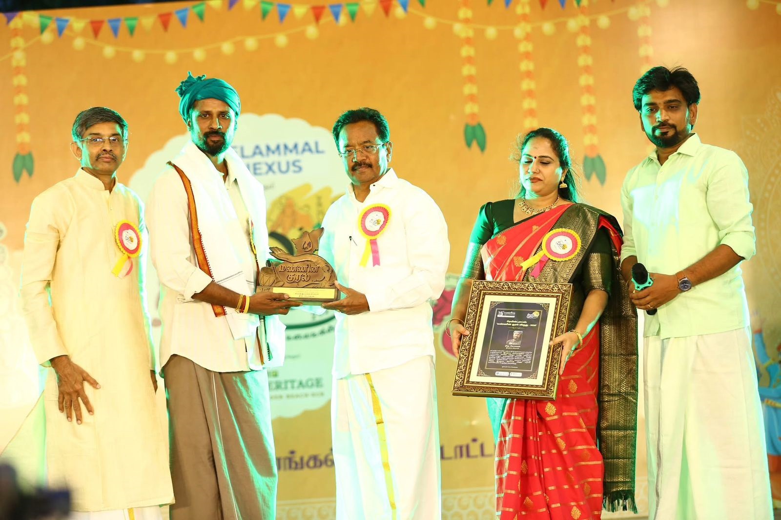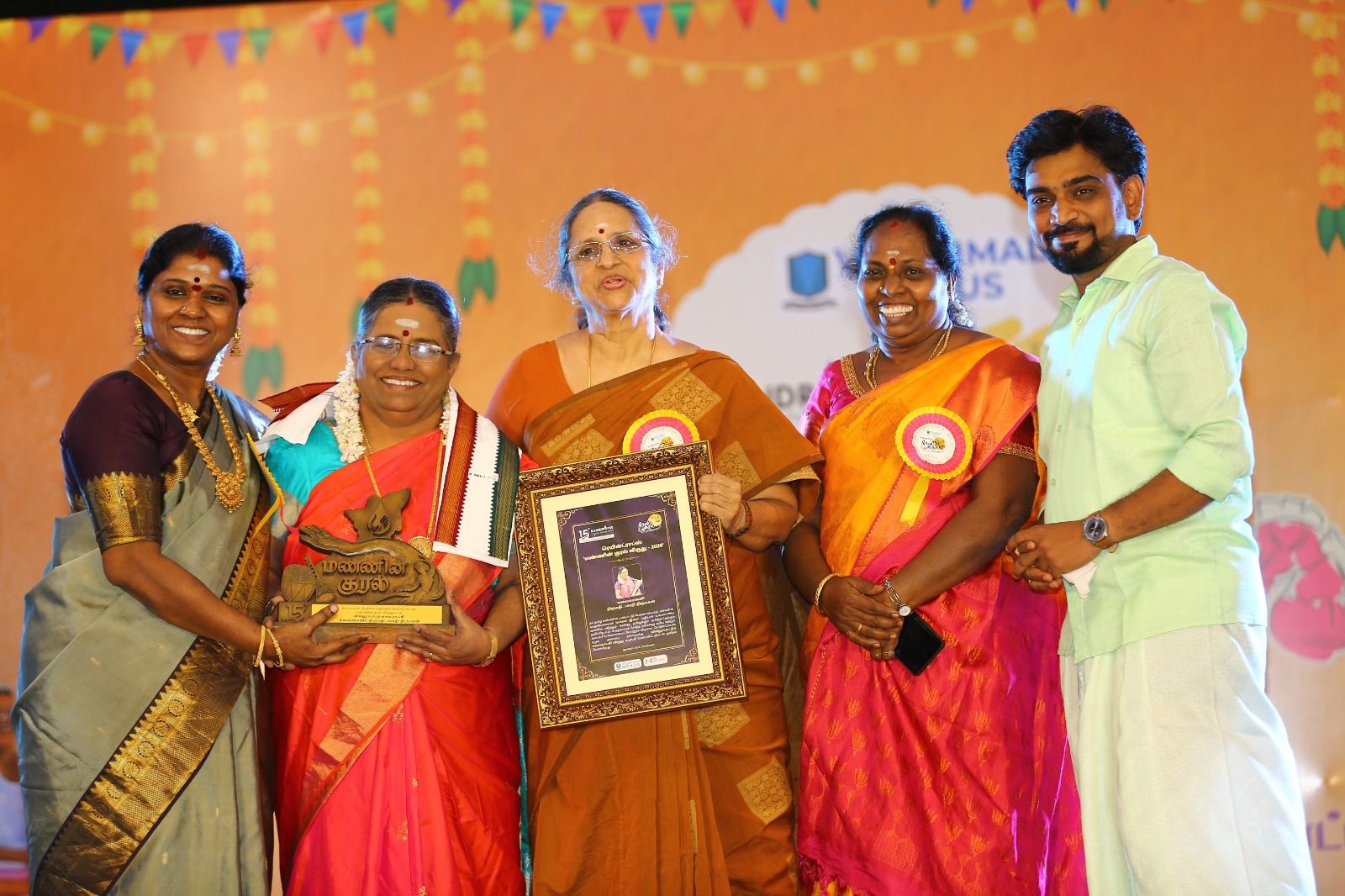 As part of the Mannin Kural Awards 2026, veteran folk artistes Dr. Pushpavanam Kuppusamy and Dr. Anitha Kuppusamy were honoured with the Lifetime Achievement Award for their immense contribution to rural and folk art forms, and for being enduring voices of the land through their lifelong association with traditional cultural expressions. Additionally, Villupattu exponent Bharathi Thirumagan, traditional instruments reviver Sound Mani, environmentalist Nimal Raghavan, and organic farmer Prabhakaran were honoured with the Mannin Kural Awards for their significant contributions in their respective fields.