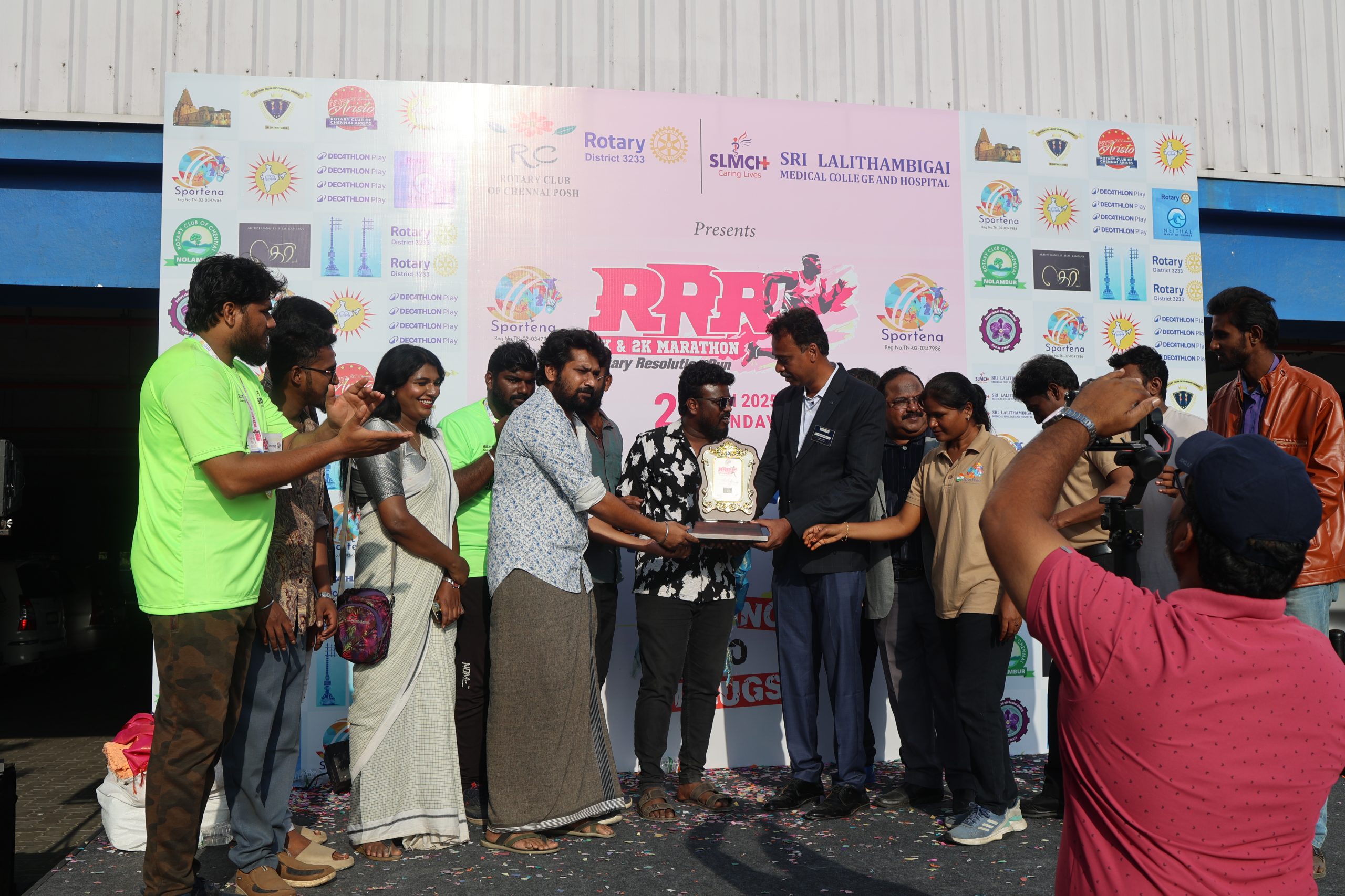 [2:58 PM, 1/29/2025] John PRO: The Rotary Club, in association with Decathlon and Sport Arena, organized a marathon event to promote a social cause. Initially, the event aimed to raise awareness about the dangers of drugs. However, the team behind the movie “Gevi” joined forces with the organizers to shift the focus towards a more pressing issue: the need for proper roads and infrastructure in rural areas.