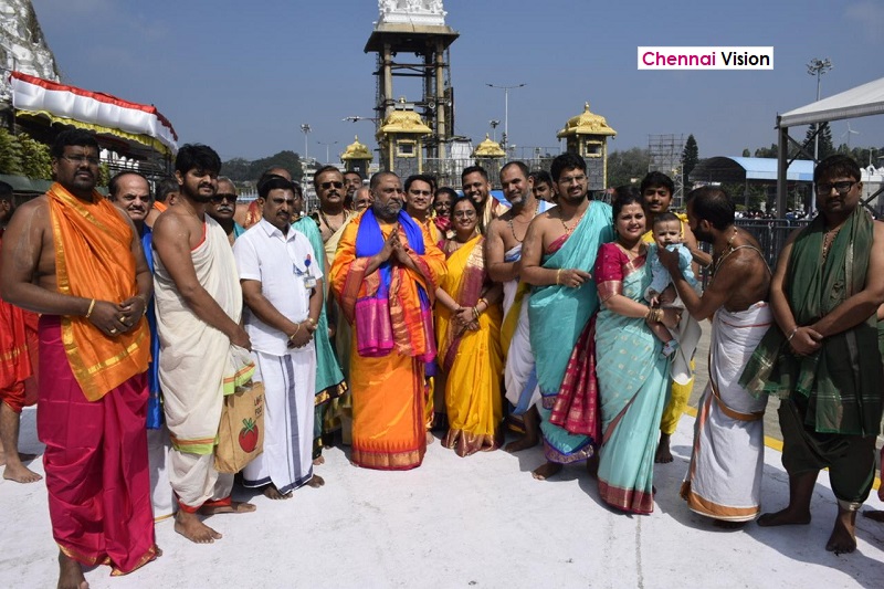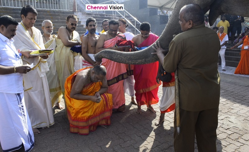 TTD Executive Officer, Sri J. Syamala Rao, personally welcomed and accompanied H.H. Sri Swamiji during the visit. H.H. Sri Swamiji had a divine darshan of Lord Sri Venkateshwara Swamy and later blessed the TTD officials at the Sri Raghavendra Swamy Mutt, Tirumala Branch.