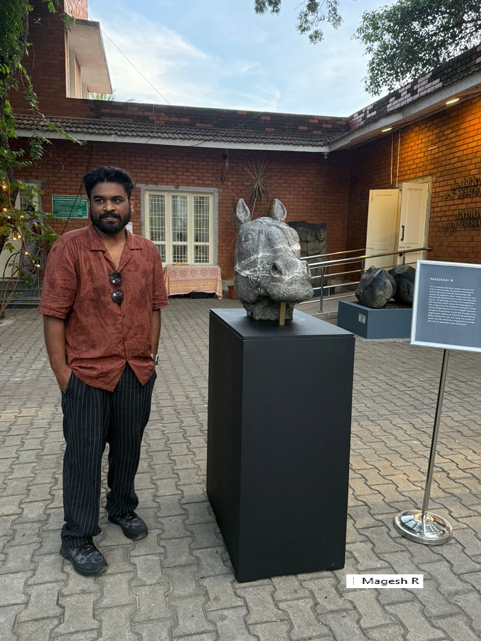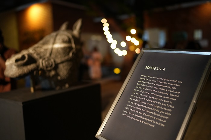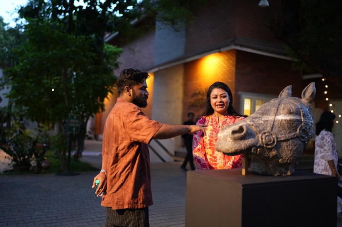 The evening also presented artist R. Magesh’s work The Monarch, a sculpture in Grigio Bronze Amani marble that reflects his fascination with equestrian forms and his transition from painting into stone. Known for his evocative depictions of animals and birds across media, Magesh’s sculpture underscored the interplay of material mastery and artistic imagination that Stone Portraits seeks to highlight.