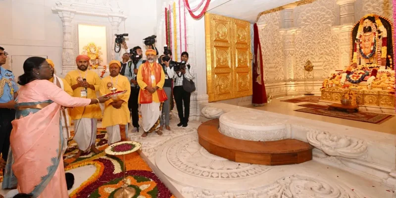 President Droupadi Murmu on Thursday installed the ‘Shri Ram Yantra’ at the Shri Ram Janmabhoomi Temple in Ayodhya and offered prayers amid Vedic chants, marking a significant milestone in the temple’s construction. The ‘Shri Ram Yantra’ has been placed on the second floor of the temple, which is also its final level, symbolising completeness. With this installation, the construction of… Continue reading "President Murmu Visits Ram Temple in Ayodhya for Shri Ram Yantra Installation"