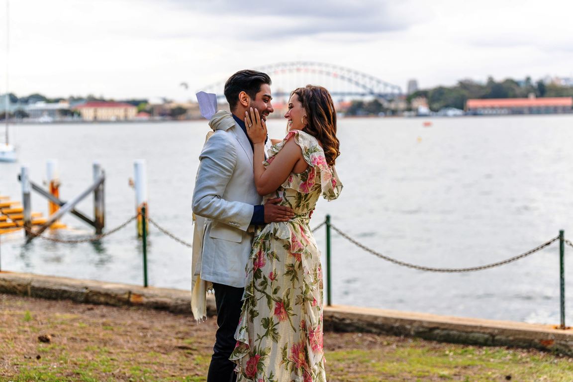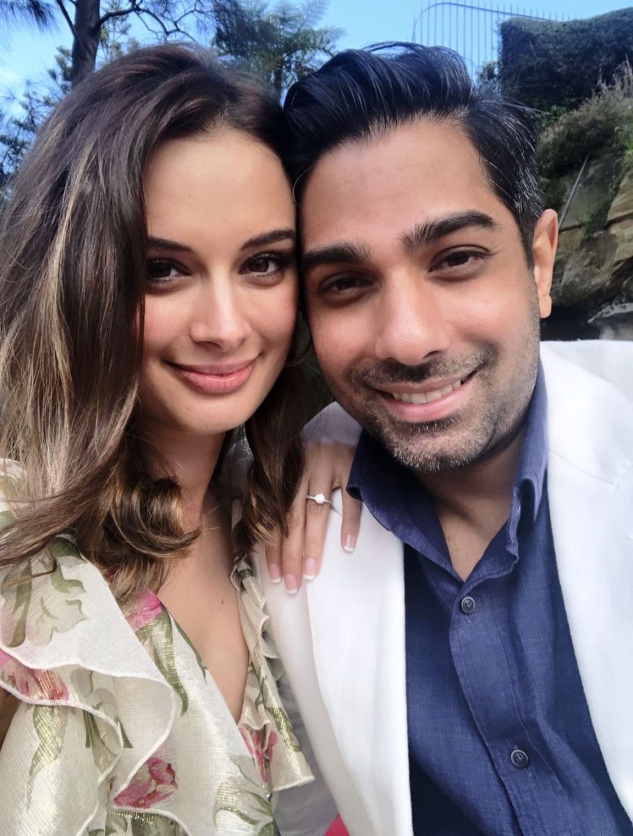 After one year of dating, the young couple took the big step last Saturday in an intimate proposal overlooking the famous Harbour Bridge of Sydney, Australia. Indo-German Bollywood actress Evelyn Sharma met the dashing entrepreneur on a blind date set up by common friend last year. The couple got along instantly with their shared passion for philanthropic causes. It was love at first sight for the pair and their close friends were anticipating the big announcement to happen quick! However, the couple decided to introduce each other to their respective families first to receive their blessings and move ahead with the engagement on the auspicious occasion of Navratri. Tushaan surprised Evelyn with a set of the couple’s favourite songs and a special note that brought her instantly to tears of joy! She said YES!