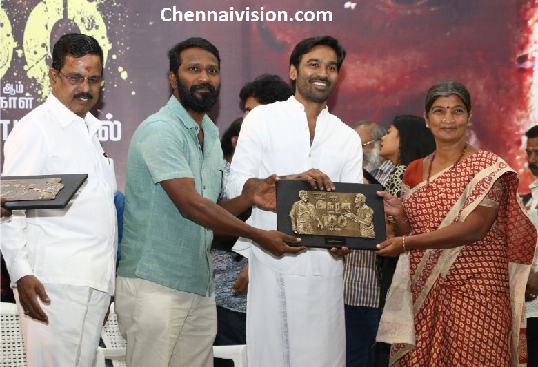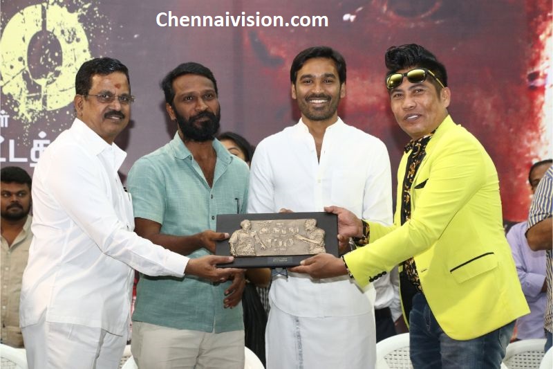 “மேடையில் வீற்றிருக்கும் அத்தனை கலைஞர்களுக்கும் பெரியவர்களுக்கும் எம் வணக்கம். தம்பி தனுஷ் வேலையில்லா பட்டதாரி படம் சமயத்தில் வெற்றிமாறம் அவர்களோடு படம் பண்ணலாம் என்று சொன்னார். அந்தக் காலத்தில் இருந்தே நாங்கள் நல்ல பழக்கம்..எஸ்.பி முத்துராமனுக்கு பிறகு என் மனதை கொள்ளை கொண்டவர் வெற்றிமாறன். தன் படத்தில் வெற்றிமாறன் உழைத்த ஒவ்வொரு நாளும் என்னை வியக்க வைத்தது. சில காட்சிகளை வெற்றிமாறன் போட்டுக்காட்டும் போதெல்லாம் இது பெரிய வெற்றி அடையும் என்று நம்பினேன் . ரிலீஸ் தேதி அறிவித்ததும் வெற்றிமாறன் பதட்டம் ஆனார். என் கண்கள் பனிக்கும் நன்றியை வெற்றிமாறனுக்குத் தெரிவித்துக் கொள்கிறேன். எனக்கும் தனுஷுக்குமான தொடர்பை வலுப்படுத்தியது தம்பி அன்புச்செழியன். சிவாஜி சாருக்குப் பிறகு தனுஷின் நடிப்பு பிரம்பிக்க வைக்கிறது. கேரளாவில் படம் பார்த்த அத்தனை பெரிய நடிகர்களும் ஒரே வார்த்தையில்” தனுஷை தவிர யாராலும் இப்படத்தில் நடிக்க முடியாது” என்றார்கள். நடிகர் திலகத்திற்குப் பிறகு தனுஷ் தான். ரஜினியிடம் நான் இந்தப்புள்ள நமக்கு கிடைத்த பொக்கிசம் என்றேன். அவரும் தனுஷ் கால்களில் விழும் சீனில் நானே நடிக்கலாமா என்று நினைத்தேன்” என்றார். இவ்வாறு தாணு பேசினார்.