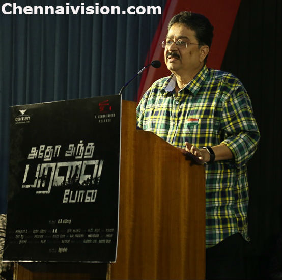எஸ்.வி.சேகர் பேசும்போது, ‘அதோ அந்த பறவை போல பாட்டு வரி தான் இப்படத்தின் தலைப்பு. நம்மிடம் இப்படியான படங்கள் வருவதற்கு இப்போது தான் வாய்ப்பு வந்துள்ளது. சினிமாவில் இரண்டு வகை. ஓடும் படம், ஓடாத படம் அவ்ளோ தான். சினிமாவில் ராமராஜன் பசுமாடு வைத்து பால் கறக்கும் படம் ஓடிவிட்டால் அதேபோல் பத்துப்படம் எடுப்பார்கள். ஏன் என்றால் இது வியாபாரம். நாங்கள் படம் எடுத்த காலத்தில் பத்து லட்சத்திலேயே படத்தை எடுத்து விடுவோம். நாம் சரியான பட்ஜெட்டில் படம் எடுக்க வேண்டும். இப்போது ஒரு நாளைக்கு நாற்பது லட்சம் ஆகிறது. சினிமாவில் மட்டும் தான் உள்ளே வந்து நிறைய விஷயங்கள் தெரிந்துகொள்ள வேண்டி இருக்கிறது. முதலில் சினிமாவை தெரிந்துகொண்டு உள்ளே வரவேண்டும். இந்தப்படத்தில் பெரிய பிளஸ் அமலாபால். அவருக்கு எல்லா மொழிகளிலும் மார்க்கெட் இருக்கு. இந்த படத்தை ரொம்ப பிரமாதமாக எடுத்திருக்கிறார்கள். அமலாபாலின் தையரித்தை நான் பாராட்டுகிறேன். சினிமாவிற்கு சென்சார் தேவையே இல்லை என்பது என் கருத்து. நம்பிக்கை வேற ஓவர் நம்பிக்கை வேற. சரியான நேரத்தில் படத்தை வெளியீடுங்கள். என் படம் எப்போது வெளியானாலும் ஓடும் என்று ஓவர் நம்பிக்கை வைக்காதீர்கள். அதனால், இப்படத்தை அப்படி சரியான நேரத்தில் வெளியீட்டு வெற்றி காண வாழ்த்துகிறேன்’ என்றார்.