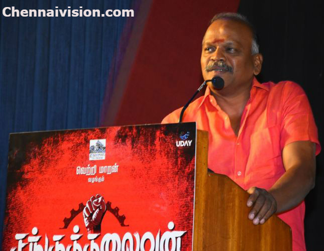 “நான்கு வருடம் ஆகுது. சினிமா நிகழ்வில் பேசி. நேற்று இரவு இந்தியன்2 படப்பிடிப்பில் உயிர் இழந்தவர்களுக்கு ஆழ்ந்த அனுபாதபங்கள். வெற்றிமாறன் ,மணிமாறன் இருவரும் அந்தக் காலத்தில் இருந்தே நல்ல நண்பர்கள். கதை டிஸ்கசன் போது இருவரும் அடித்துக் கொள்வார்கள். அந்தளவிற்கு ஆக்கப்பூர்வமான கதை விவாதம் செய்வார்கள். நான் பார்க்கும் உண்மையான மிகச்சில மனிதர்களில் வெற்றிமாறன் ஒருவன். சட்டமன்றத்தில் நிறையபேர் நல்ல நடிகர்கள் இருக்கிறார்கள். அவர்கள் நம்மை விட நல்லா நடிக்கிறார்கள். அதனால் நாம் சினிமாவிற்கே வந்து விடுவோம் என்ற முடிவுக்கு வந்தேன். நான் வெற்றிமாறனிடம் நடிக்கப் போகிறேன் என்றதும் அவர் மறுத்தார். பின் இந்தக்கதைக்கு நீங்க சரியா இருக்க மாட்டீங்க என்றார். பிறகு ஒரு கேடக்டரை உருவாக்கி இருக்கிறார்கள். சமுத்திரக்கனி நடிக்க சம்மதிக்கா விட்டால் இந்தப்படம் உருவாகி இருக்காது.
