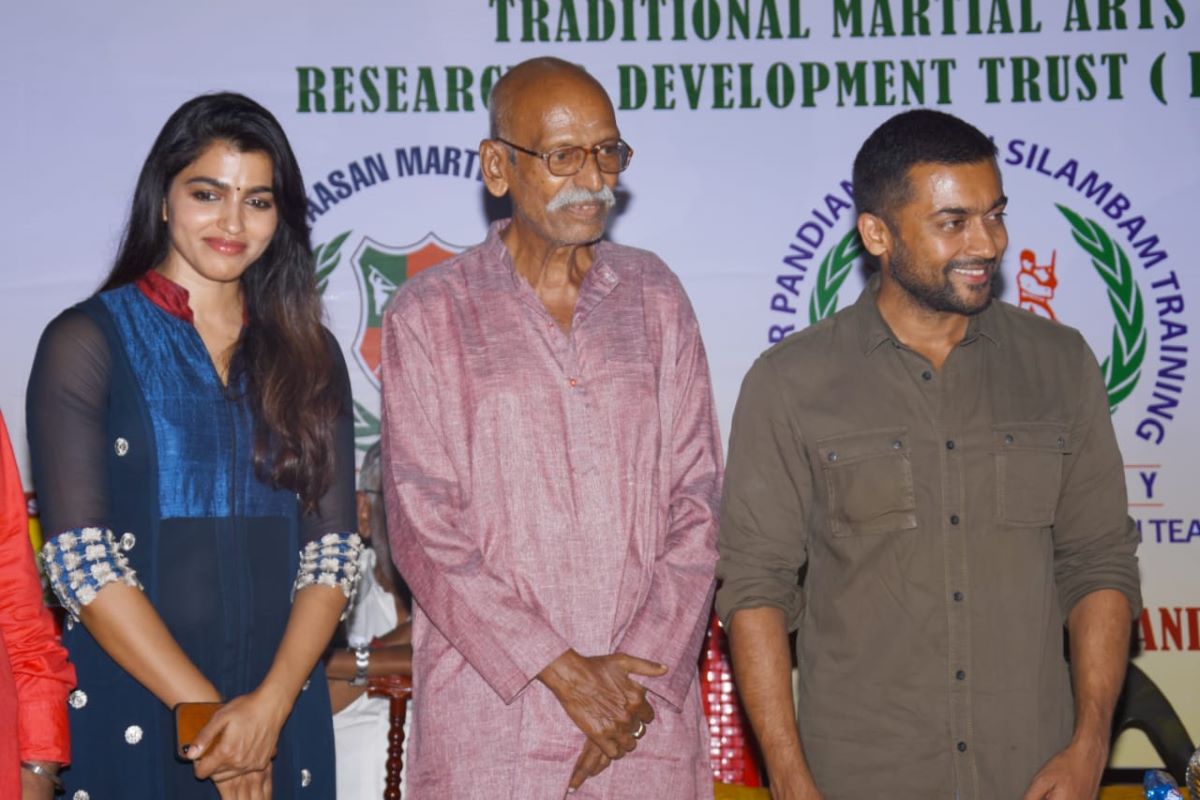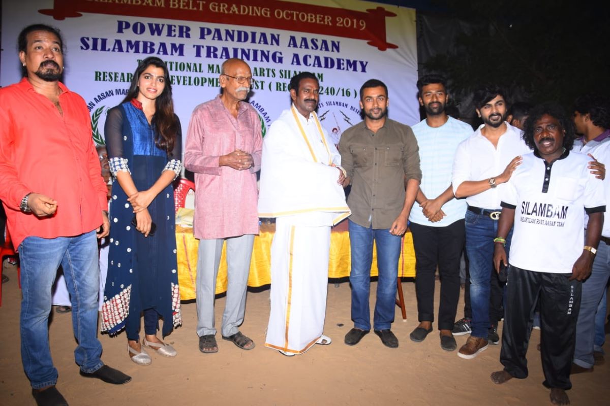 சூர்யா, கார்த்தி, சாய் தன்ஷிகா கலந்து கொண்ட பாண்டியன் மாஸ்டர் நடத்திய சிலம்பம் பெல்ட் கிரடிங் நிகழ்ச்சி