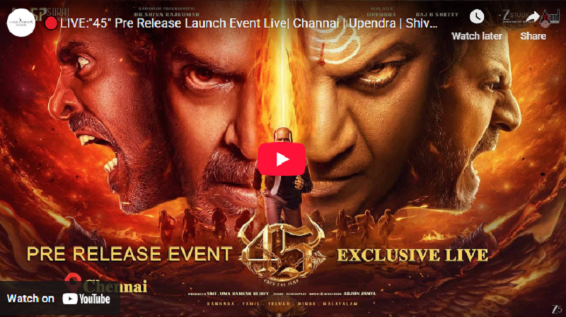 The Live link for the event Pre Release Event of 45 The Movie . By Chennaivision in Cinema News, News, சினிமா செய்திகள் December 22, 2025Share this: Click to share on X (Opens in new window) X Click to share on Facebook (Opens in new window) Facebook Like this:Like Loading...Related