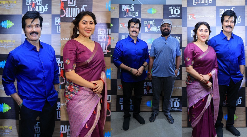 வரம் சினிமாஸ் நிறுவனம் சார்பில் தயாரிப்பாளர் வெங்கடேசன் பழனிச்சாமி தயாரிப்பில் நடிகர் ரஞ்சித் நடிப்பில் இயக்குநர் வெங்கட் ஜனா இயக்கத்தில் உருவாகியுள்ள ‘இறுதி முயற்சி’ எனும் திரைப்படத்தின் இசை வெளியீட்டு விழா சென்னையில் சிறப்பாக நடைபெற்றது. இந்நிகழ்வில் இயக்குநர்கள் ஆர். வி. உதயகுமார் – பேரரசு ஆகியோர் சிறப்பு விருந்தினர்களாக கலந்து கொண்டனர்.