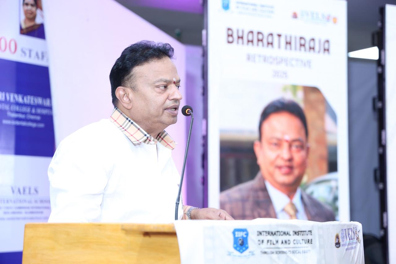 To celebrate the remarkable contributions of veteran filmmaker Bharathiraja, who revolutionized Tamil cinema with his realistic storytelling and social vision, the Department of Visual Communication at Vels University, in collaboration with Director Vetrimaaran’s International Institute of Film and Culture (IIFC), is organizing a five-day film festival from November 7 to 11, 2025.