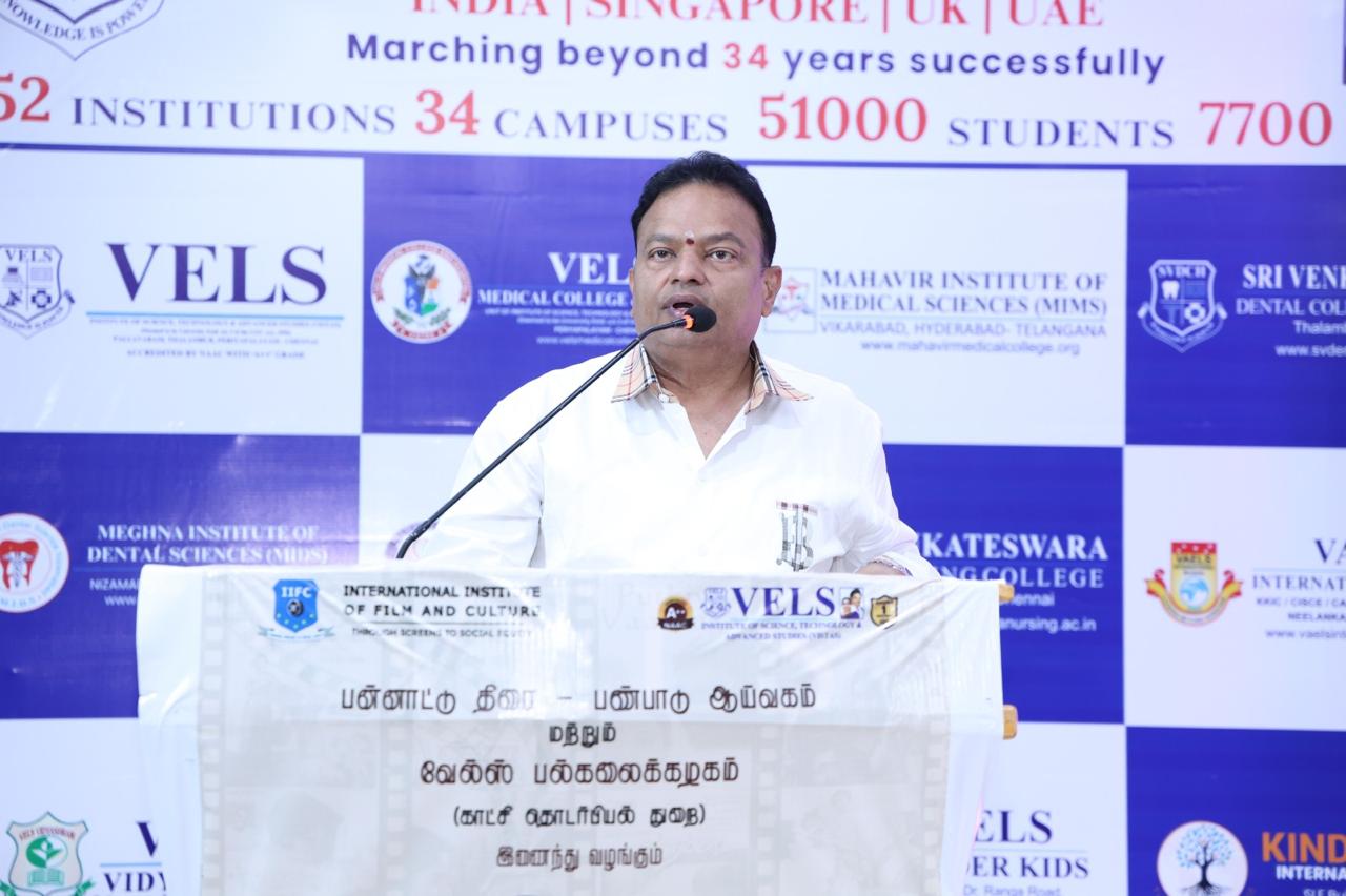 Following the inauguration, Dr. Ishari K. Ganesh, Founder Chancellor of Vels University, addressed the media and said:“It gives me immense pride to host this festival in honour of a true legend, Director Bharathiraja. Over the next five days, several renowned film personalities will participate in the celebrations. Earlier, we organized a similar tribute for Director Balu Mahendra, which was a memorable experience, and this occasion brings me the same joy.